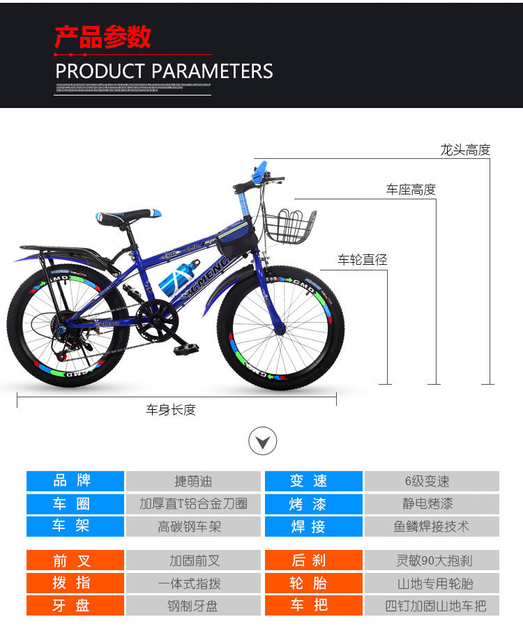 儿童自行车山地车20寸22寸,适合身高120CM-165CM,采用加厚车架,加粗前叉氩弧焊接,坚固耐用,铝合金双层刀圈,承重更强,三元内胎,气密性高,前钳刹,90后抱刹车,刹车灵敏,加固四钉车把,骑行更稳固轻快 支持内销,外贸,支持小额批发,,可联系微信QQ咨询 电话(微信同步),13292121526