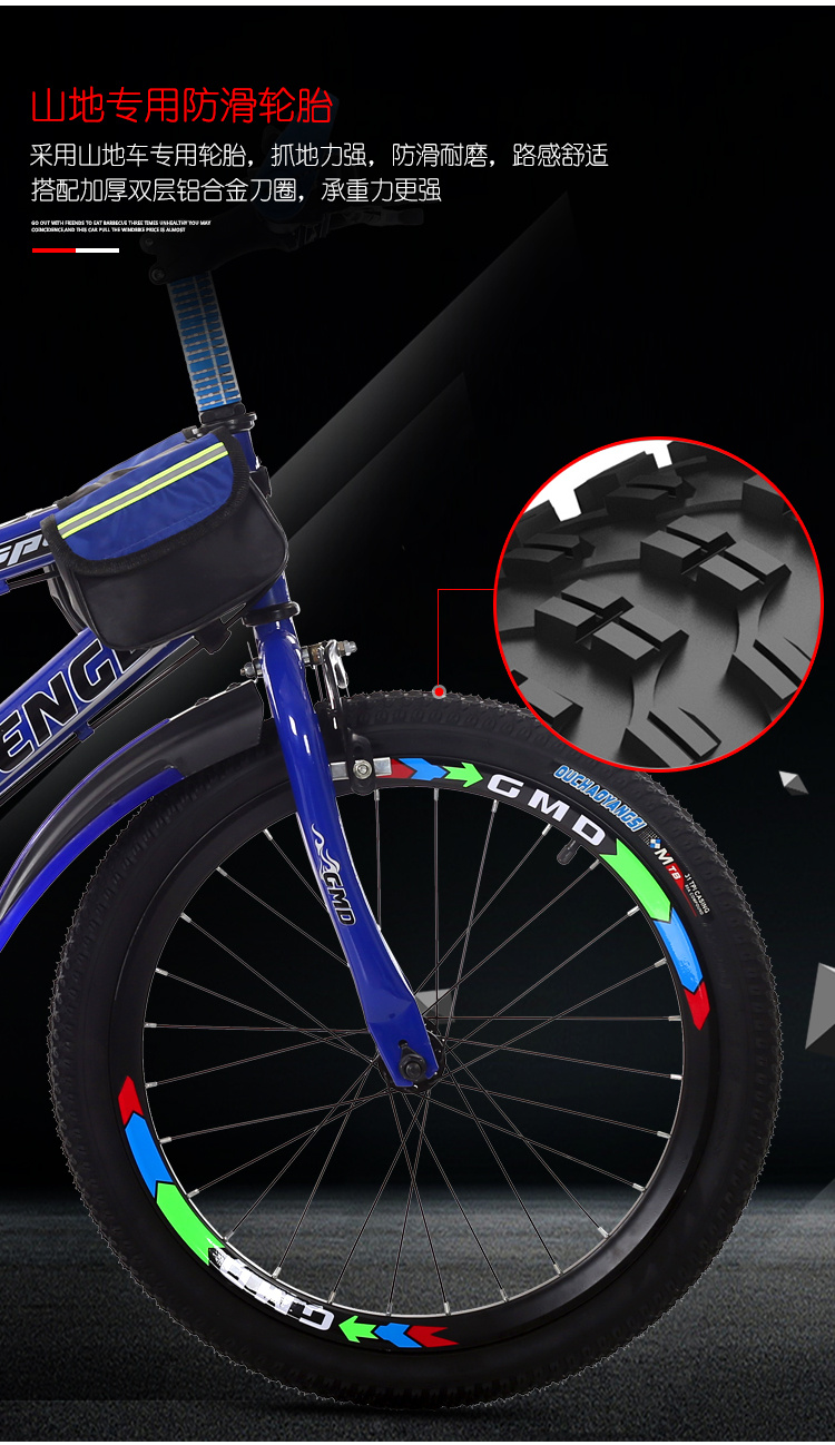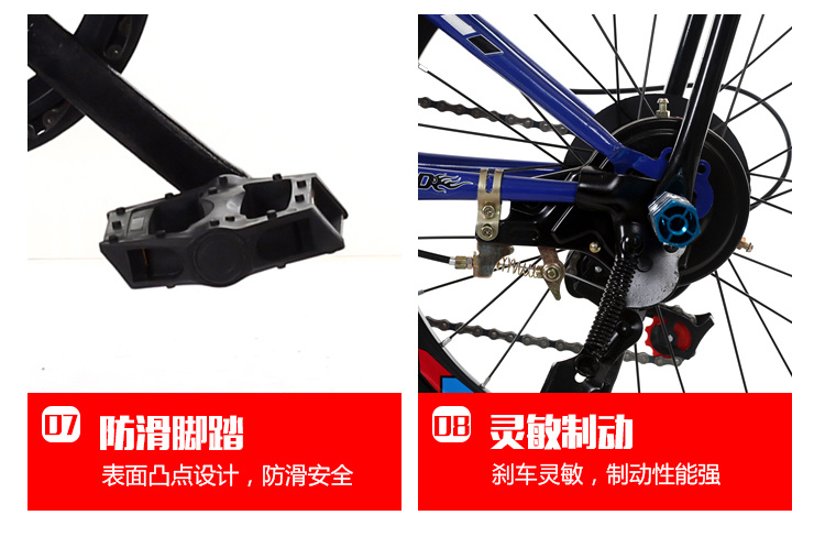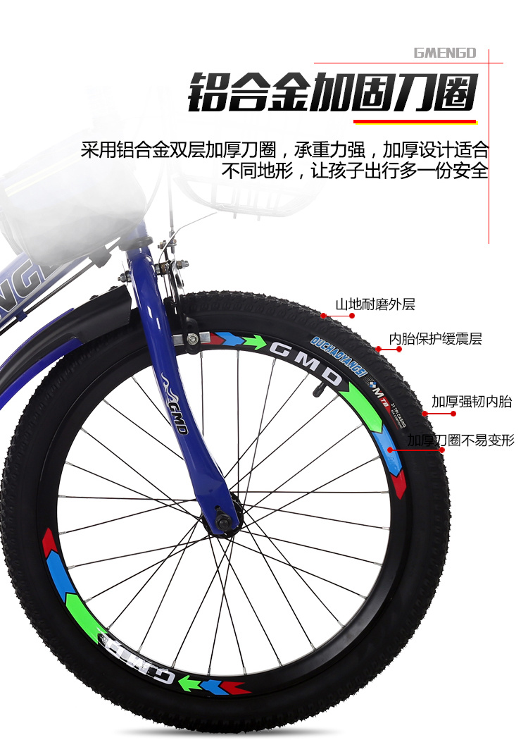 儿童自行车山地车20寸22寸,适合身高120CM-165CM,采用加厚车架,加粗前叉氩弧焊接,坚固耐用,铝合金双层刀圈,承重更强,三元内胎,气密性高,前钳刹,90后抱刹车,刹车灵敏,加固四钉车把,骑行更稳固轻快 支持内销,外贸,小额批发,可联系微信QQ咨询 电话(微信同步),13292121526