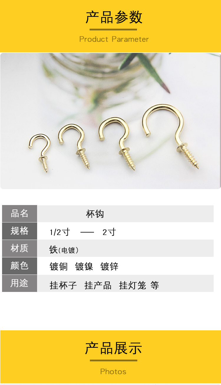 2cm gancho de Copa de gancho de ángulo recto largo abierto ojo de oveja signo de interrogación gancho de luz abierto gancho de luz de gancho de 9 caracteres gancho llavero gancho de tornillo de ataque propio