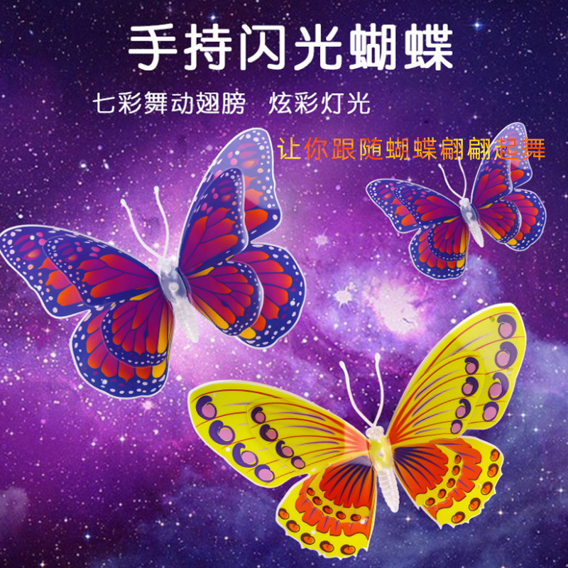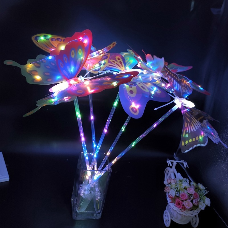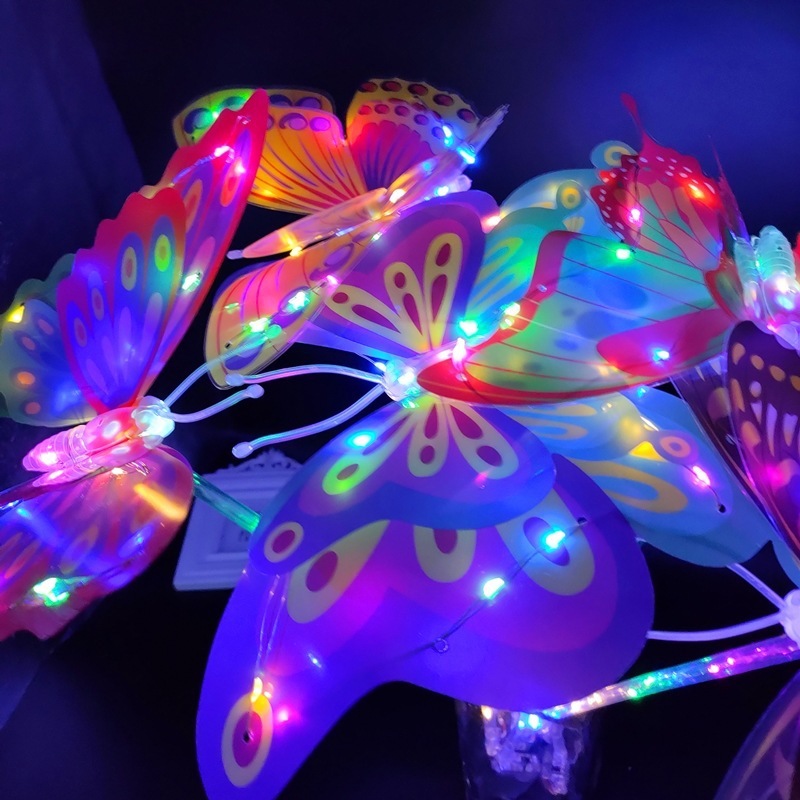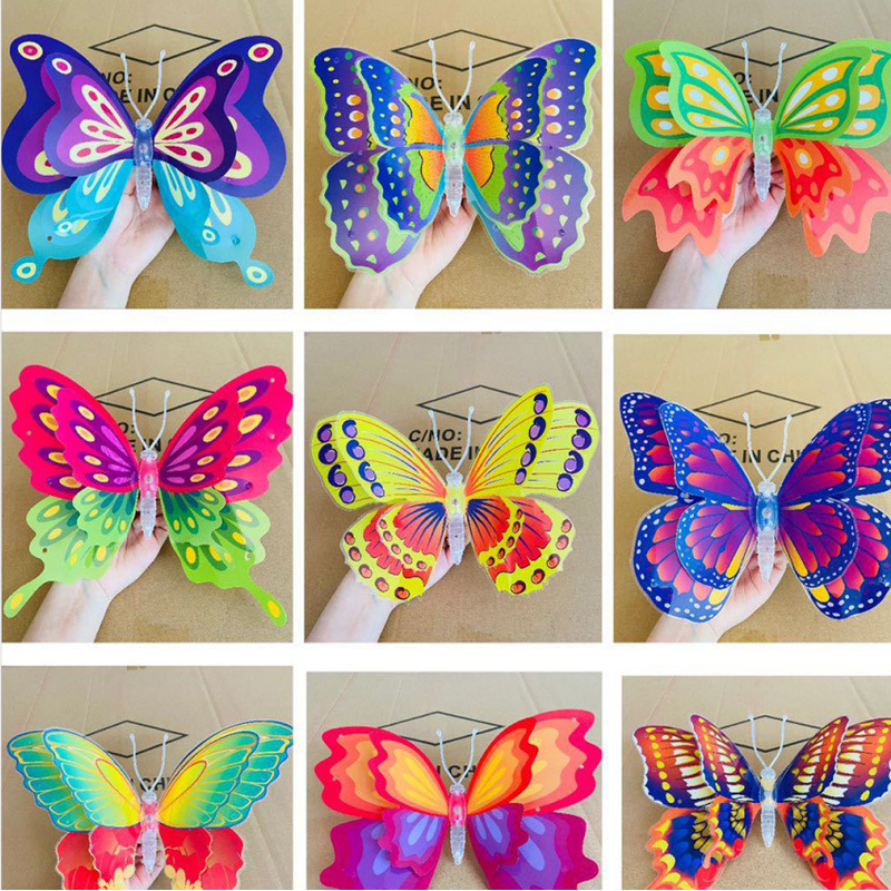 Los fabricantes del mercado nocturno de puestos venden al por mayor juguetes luminosos con alas de mariposa trémolos, nuevos regalos de mariposa simulados