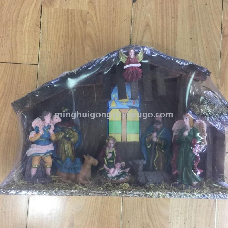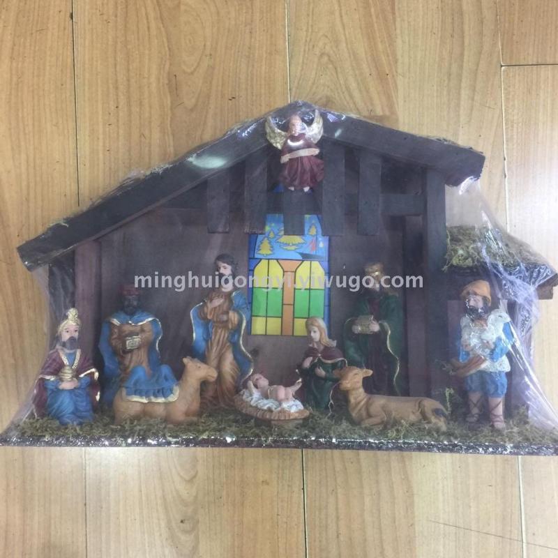 Comercio Exterior Jesús nació artesanía de madera de tamaño mediano resina artículos navideños Grupo de caballos regalos de iglesia de adornos religiosos
