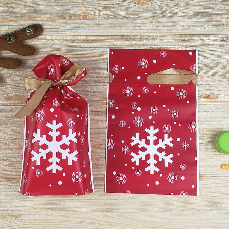 Nueva Bolsa de regalo de Navidad bolsa de embalaje de azúcar de vaca crujiente de copos de nieve bolsa de embalaje de frutas seguras cinta de extracción bolsa de cuerda bolsa de paquete de bolsillo 1523