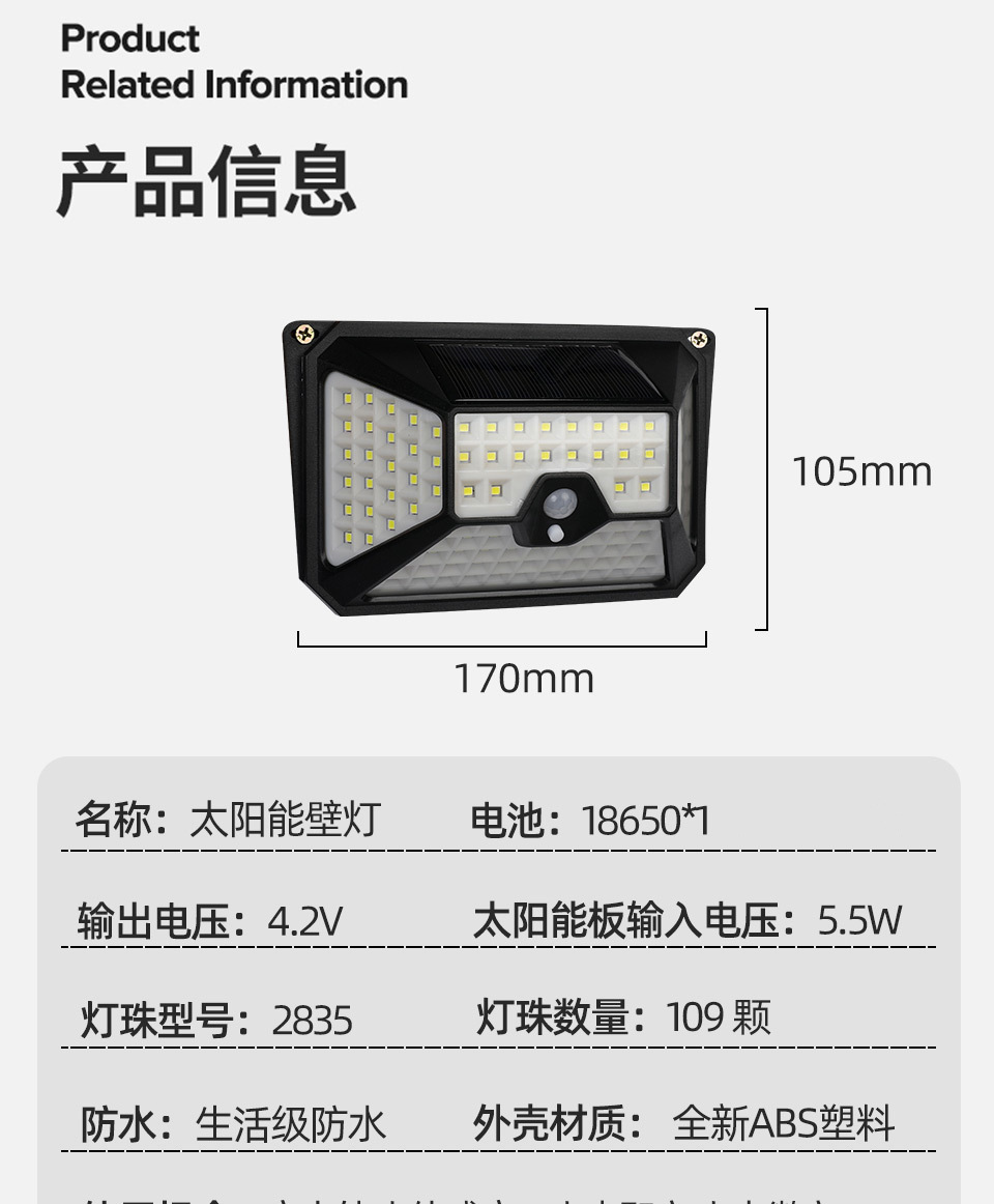 Nueva lámpara de pared de agua de lluvia solar lámpara de patio de inducción humana lámpara de pared de emergencia de doble uso interior y exterior