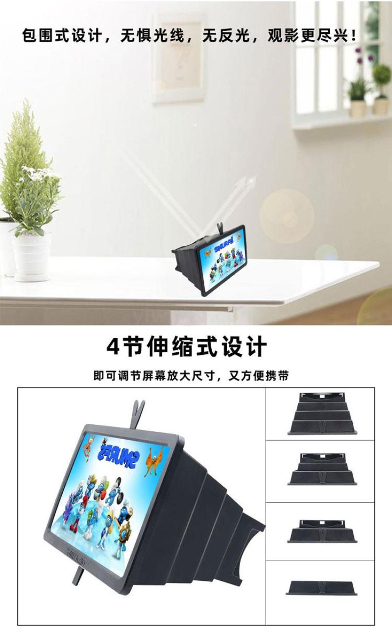 Amplificador de pantalla de teléfono móvil de 14 pulgadas lente azul de alta definición telescópica 3D amplificador de soporte de teléfono móvil de escritorio creativo