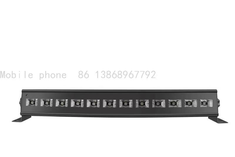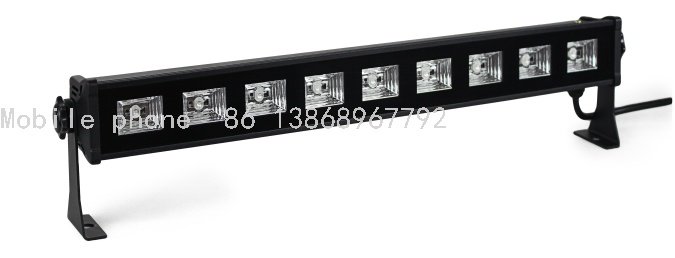 新款9颗UV 27W LED洗墙灯圣诞节万圣紫光酒吧KTV装饰背景染色灯 LED光源:9x3W 功率: 9.5W 电源电压:100-240V AC 频率: 50~60Hz 控制模式:通电常亮(不带遥控) 控制模式:自动、声控、频闪、常亮、渐变、亮度调节(遥控款) 外壳材质: PVC 机壳:铝合金 灯 尺 寸: 50.3*6.1*5.9 CM 整箱数量: 12台 单台净量: 0.9 KG 整箱毛量: 12 KG 内箱尺寸: 62.7*7.5*7.7 CM 外箱尺寸: 63.5*22.5*33.5 CM