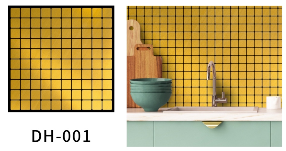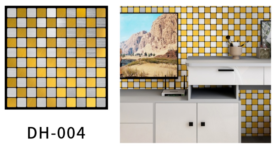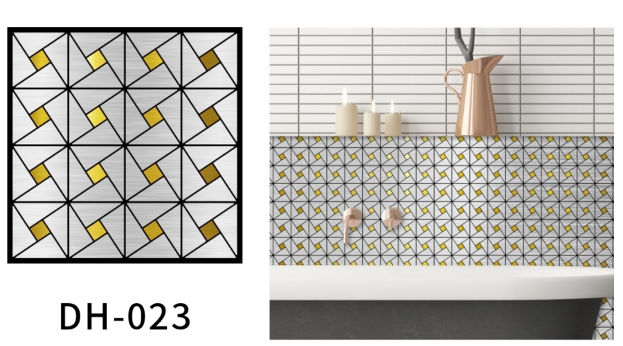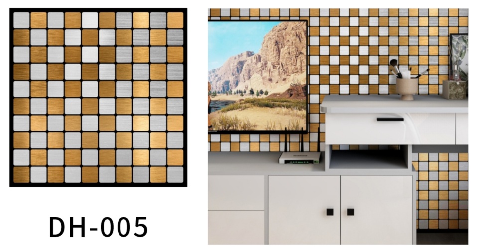 Pegatinas de pared de textura de azulejos de mosaico metálico con pegamento propio pegatinas a la pared de fondo del televisor del baño