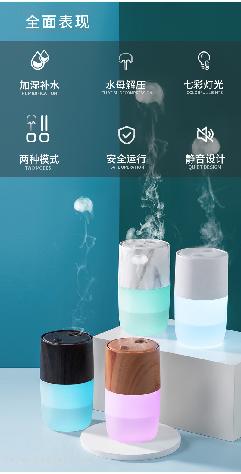 Nuevo Humidificador de pulverización Medusa Elf purificador de aire ultrasónico para vehículos domésticos Humidificador de grano de madera