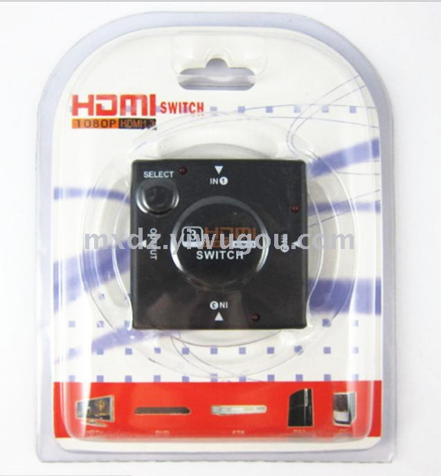 MINI型切换器(选择器)是三路一致的HDMI信号,一路HDMI输出信号,该切换器(选择器)的三路输入可连接三台不同的高清数字信号源,并可通过手动切换按键或遥控器在三台不同的高清数字信号源之间选择切换,该切换器是智能型,用户选择使用或不使用遥控器、电源适配器均能正常工作,非常方便实用。