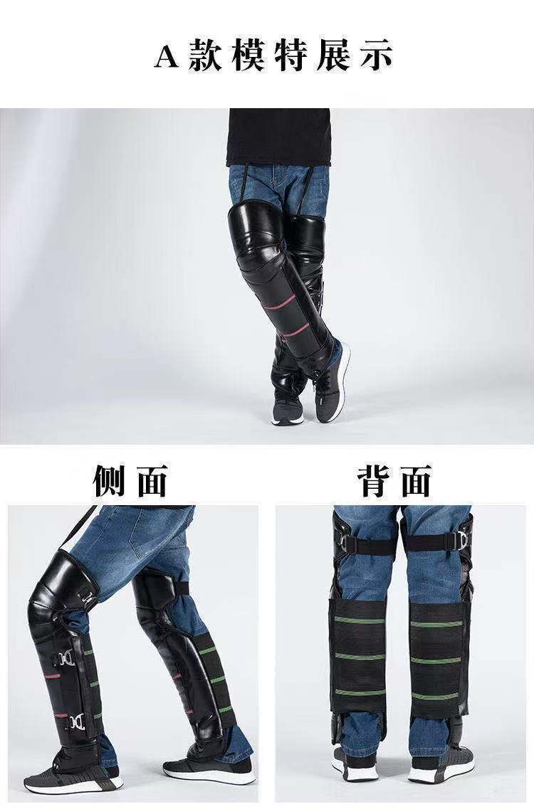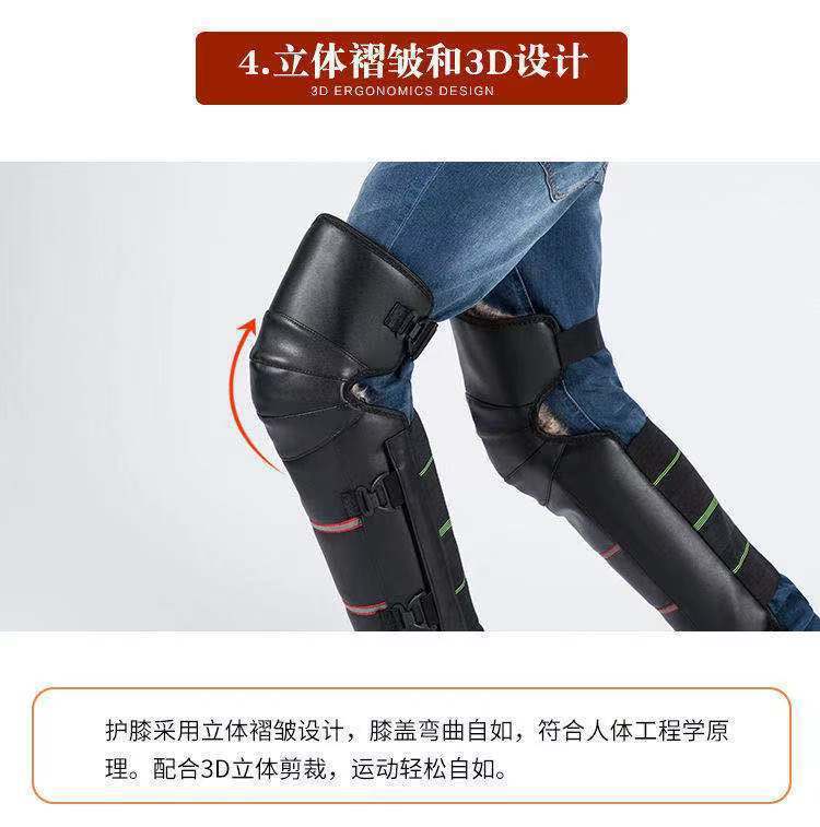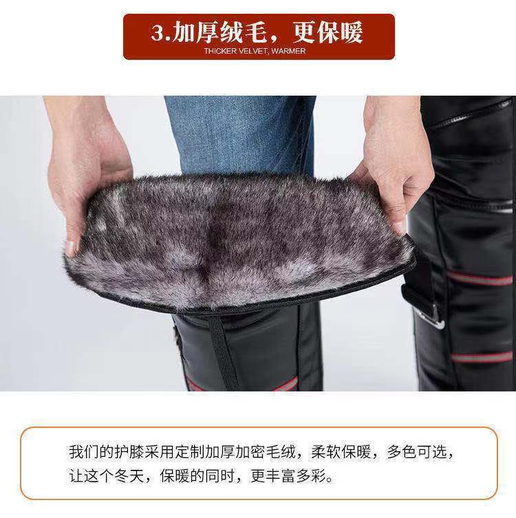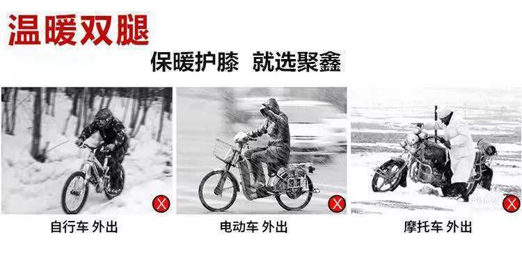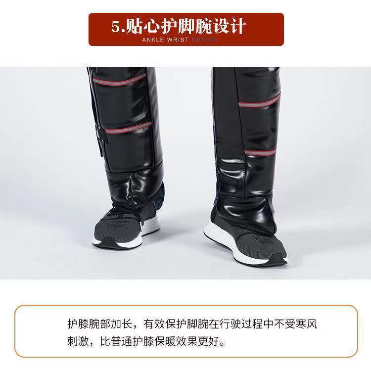 En invierno, equipado con un vehículo eléctrico de rodillera de motocicleta para mantener las piernas calientes, los hombres montan un coche de batería de lana a prueba de viento y frío.