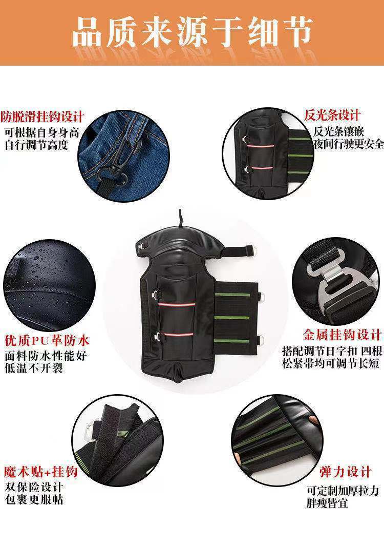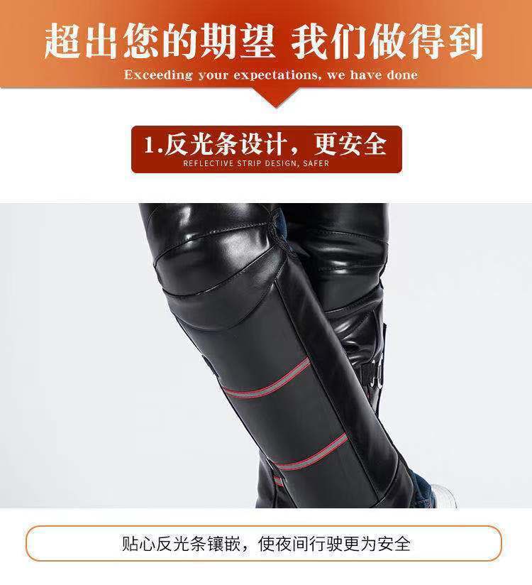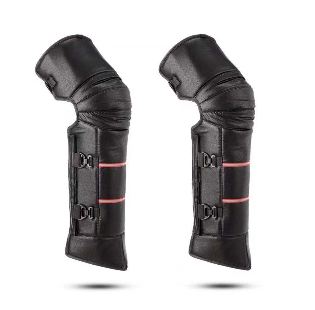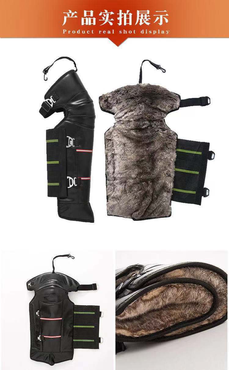 En invierno, equipado con un vehículo eléctrico de rodillera de motocicleta para mantener las piernas calientes, los hombres montan un coche de batería de lana a prueba de viento y frío.