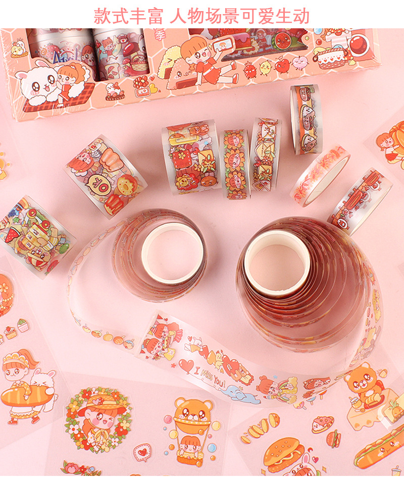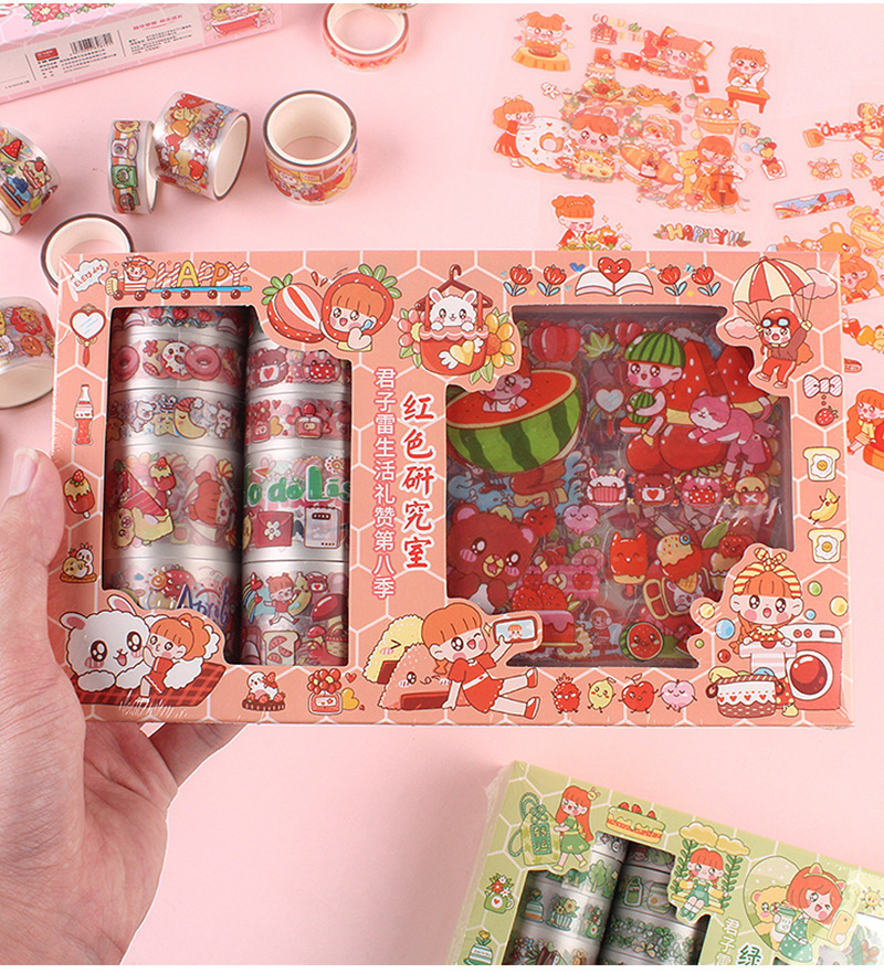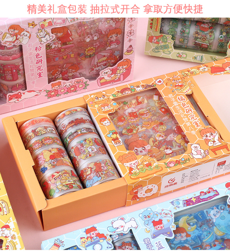 Lindo juego de cajas de regalo de cinta adhesiva de dibujos animados para chicas de dibujos animados