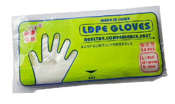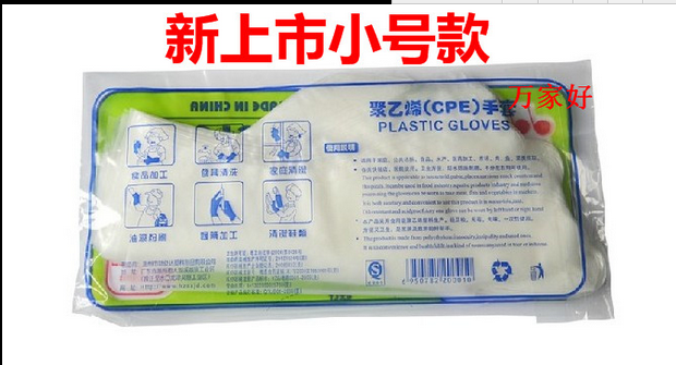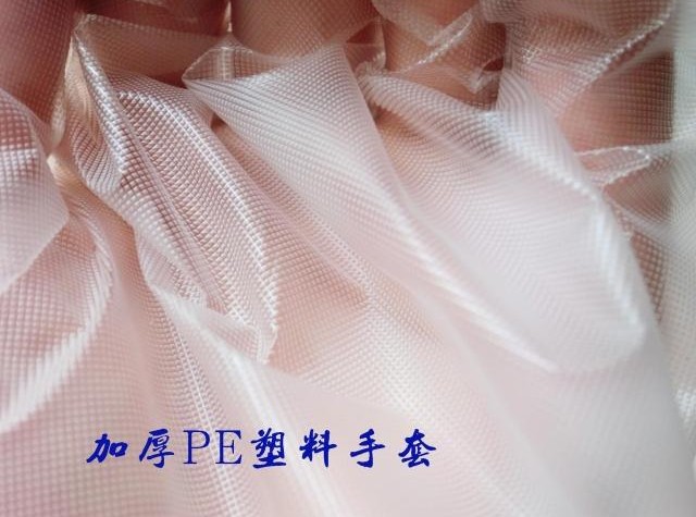 【产品简介】: 名称:恋尚首一次性PE手套(特厚型) 包装:50只/包,100包/箱 规格:M ?名称:宏发一次性PE手套(特厚型2015新款上市):现厂家搞活动让利中....... 包装:50只/包,100包/箱 规格:M 适用于家庭,公共场所,食品,水产,市场,肉,鱼,菜类提取. 各类快餐店,卫生方便,防水防油耐磨,不分左右均可使用. 本产品采用食品级聚乙烯塑料生产,经卫检,无毒,无味,一次性使用,方便又卫生,是家居及旅游的好帮手. 一次性卫生PE手套,选用无毒无味聚乙烯材料精制而成。为食品加工,医疗护理,药品配取,厨房料理,家务劳动,发廊染发。露营烧烤等以及酒楼食肆需用手接触食物时所用。让您保持手部皮肤,避免过多接触碱性清洁剂之功效,为居家生活之良品。 【适用范围】: ·食品加工及厨房调理 ·医院护理及药品配套 ·家庭打扫卫生/消毒 ·餐厅/须用手直接接触食品时 ·大型超市/饭店用手调拌食品 【卫生标准】:经严格检测符合直接,接触皮肤/食品。 【产品特性】:防尘、防污、轻便、灵活,耐油、耐洗剂的强力乙烯制品。手套表面经特殊加工,可防粘连、滑手、透气好,经济耐用,可左右手混用。