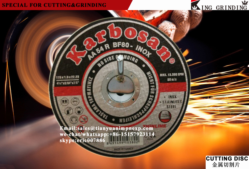 材质/Material:棕刚玉,白刚玉,单晶刚玉 white/Aluminum Oxide; 尺寸/Size:125x1.2x22.2mm 网布/Net:2 张/pcs 切割型材/Cutting for:金属(matal),不锈钢(stainless steel),角钢(angle steel),螺纹钢等ect 包装/Packing:50pcs 内盒/Inner box;800pcs 牛皮纸箱/Brown carton 交货周期/Delivery Time:7-10天/days