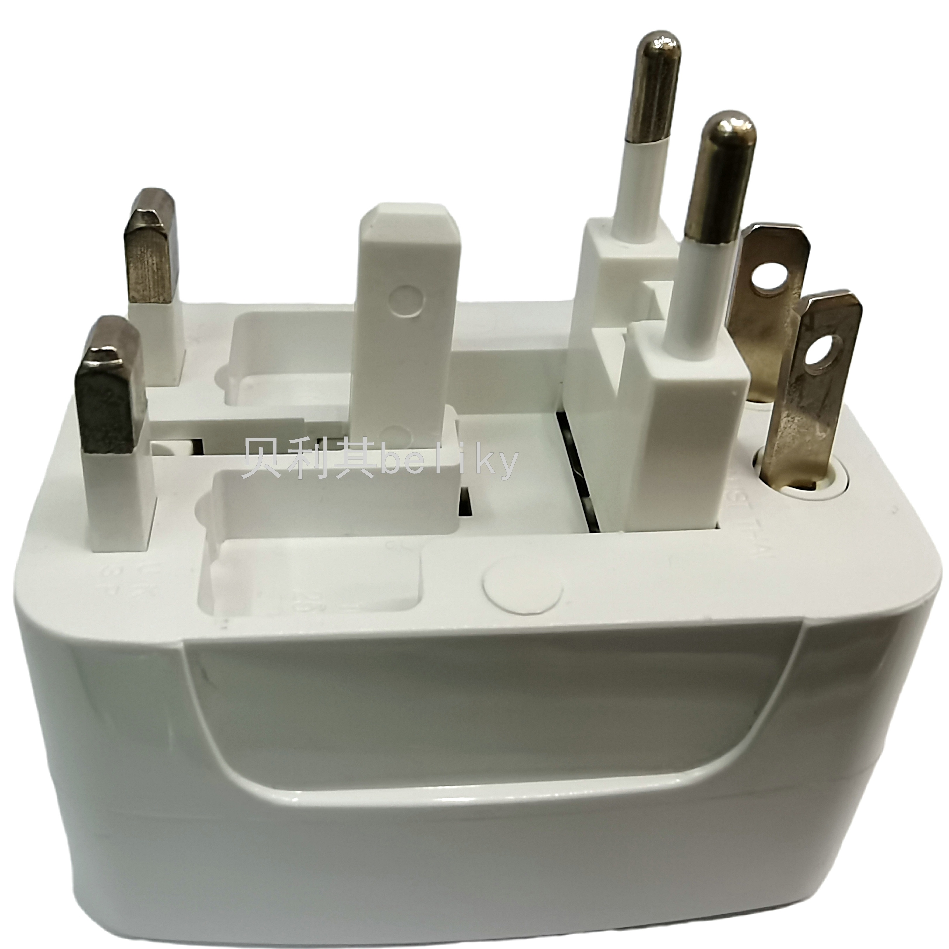 一、本产品适用于全球150多个国家 二、本产品不适用地区:非洲部分地区。 三、适用范围:本产品用于不同国家标准的插头插座相互转换;适用于个人数码助理(PDA)、数码相机、充电器、光碟机、笔记本电脑、刮须刀等小功率电器。 四、产品优点: 1、本产品精致、美观,功能强大,集多国标准插头于一体。在世界任何地方都能够轻松地连接上你的电器产品,实现了真正意义上的全球通。 2、插脚部分:为全球最流行的四种不同制式可伸缩插脚“ 英式(三个方插脚)、欧式(二个圆插脚)、中/美/日式(双扁插脚)、澳式(八字双扁插脚)”。 3、AC插座部分:为多功能插孔,适合全球多国插头的使用。(可转换两脚和三脚的插头) 五、电压:本产品可处理AC(110-240V )标准电压,不具备变压功能。 六、本产品是您-----出国旅行、留学、商务考察、探访亲友的必备伴侣;可作为高级电子礼品赠送他人,体现关怀,是电子商务礼品的首选。 规格: ■内置的多款插头可以在不同的国家使用,为您的旅行提供方便. ■LED 充电指示灯 ■输入电压e: 100V – 250V ■保险管:6.3 A ■功率: 830W Max. at 110VAC, 240V 1870W Max. at 240VAC 重量:0.076kg 尺寸:7.3x4.7x3.9cm (L x B x H) 包装: 出厂包装: 彩盒 ■装箱数量:100pcs / carton ■外箱尺寸:34.5*32*30cm