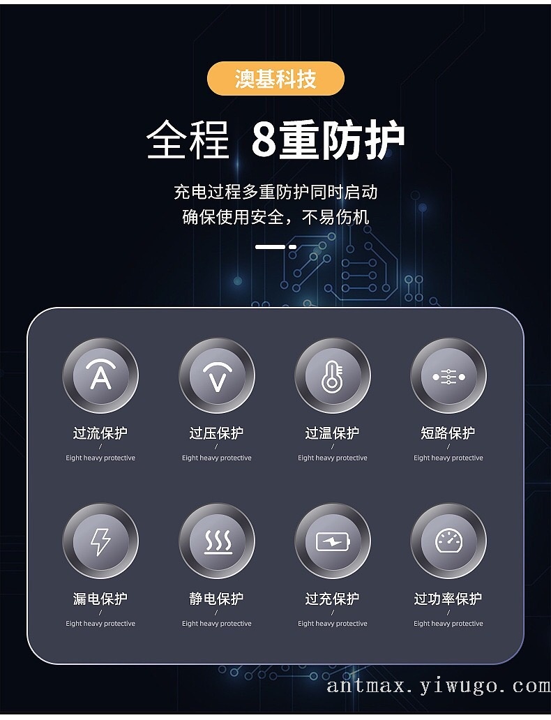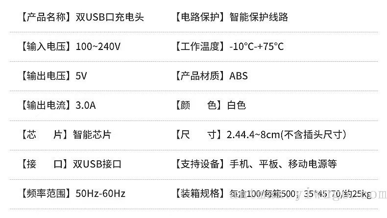 USB接口输出:5V 3000MA,9V 2000MA,12V 1500MA