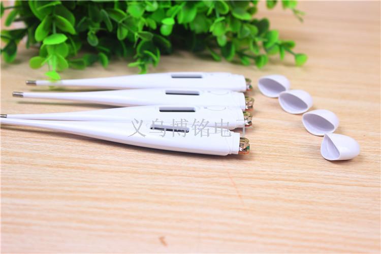 1,使用前,应先用酒精对体温计传感头进行消毒。 2,按压电源键,蜂鸣器会发出蜂鸣声,显示提示符号。 3,随后,显示器显示上次测量的温度,并持续2妙钟,接着显示器°C符号闪烁,表示已处于待测状态。 4,将体温计传感头放入测量部位,显示器显示温度逐渐上升。同时°C符号闪烁,表示测量进行中。测量中如连续16妙温度不变,则°C符号停止闪烁,表示体温测量完毕并已记忆测量结果,即可读取显示出的温度值。