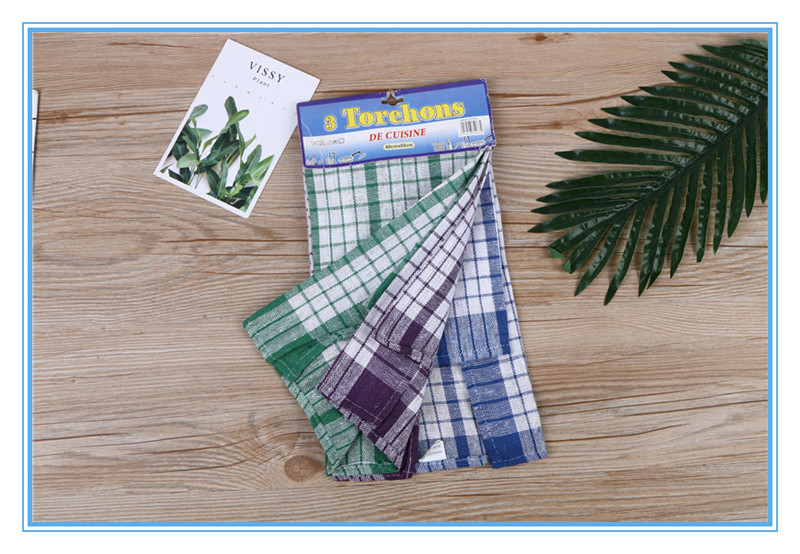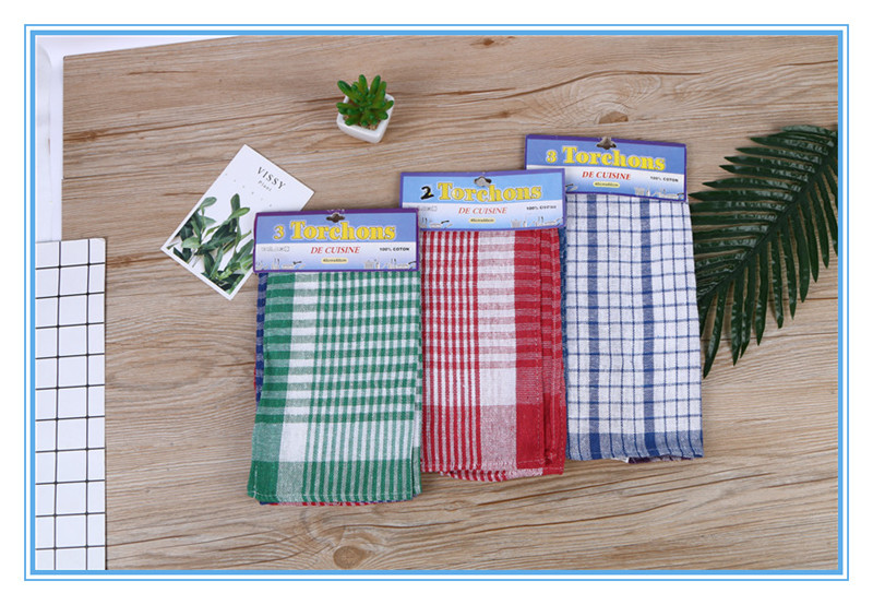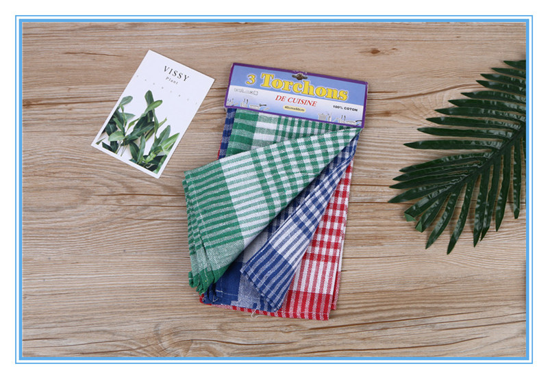 Tres toallas de algodón con trapo de algodón no absorben el agua y engrosan los productos de limpieza para lavar los platos en la cocina.