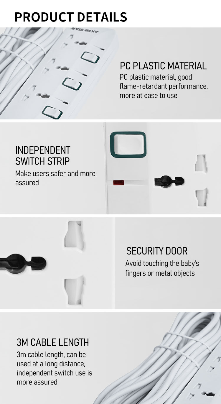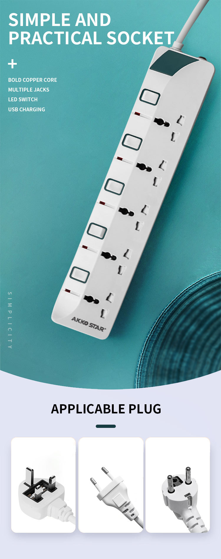 Akkostar 3 metros cuadrados de cobre completo 0,75 placa de enchufe multifuncional con enchufe inglés de cobre completo