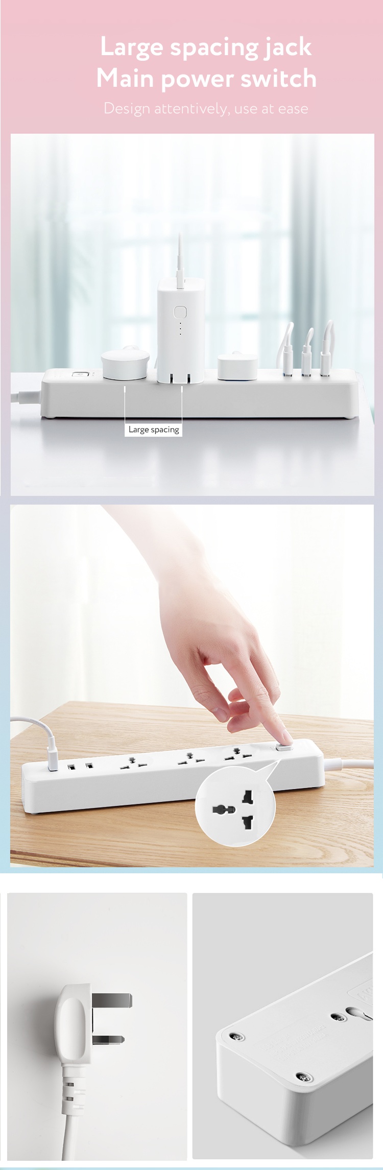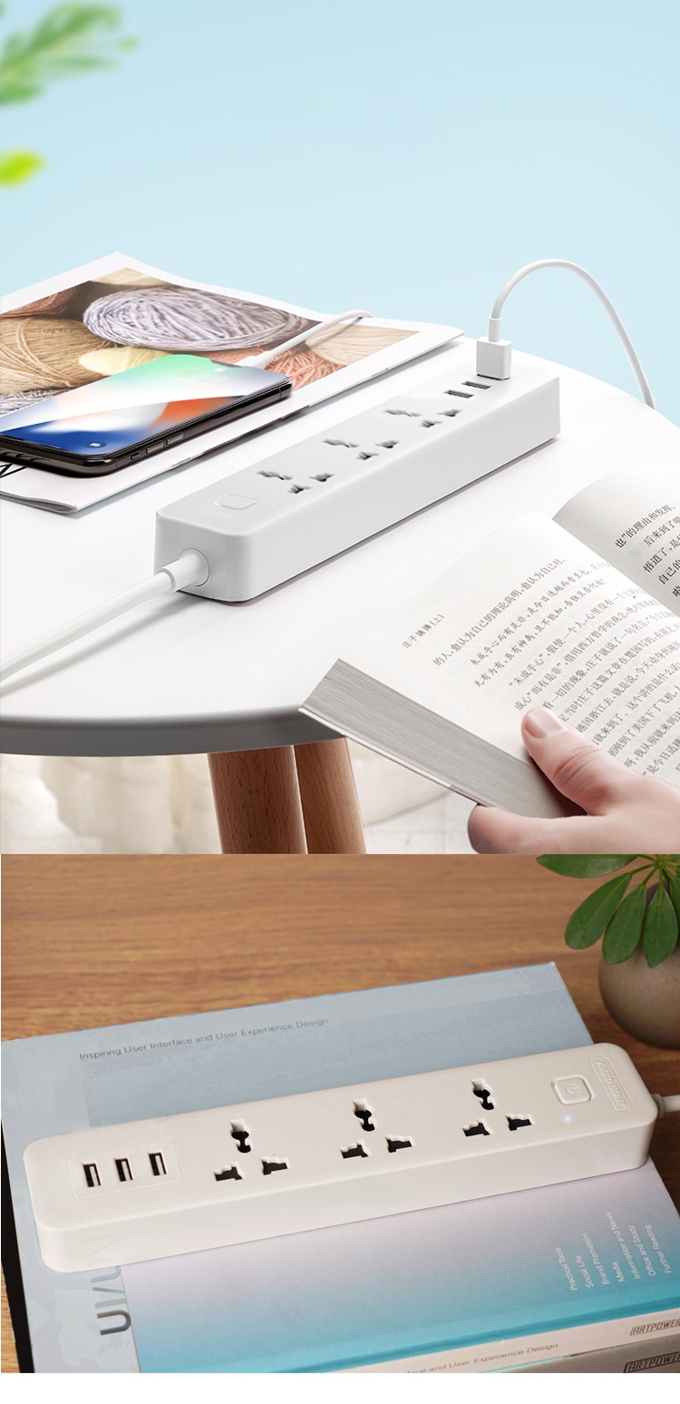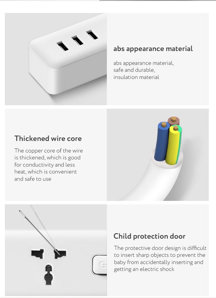 Akkostar abre tres enchufes multifuncionales de 3 metros 3usb con luz, todos los enchufes de cobre 2500w
