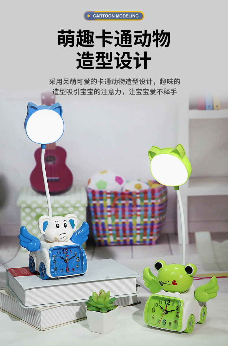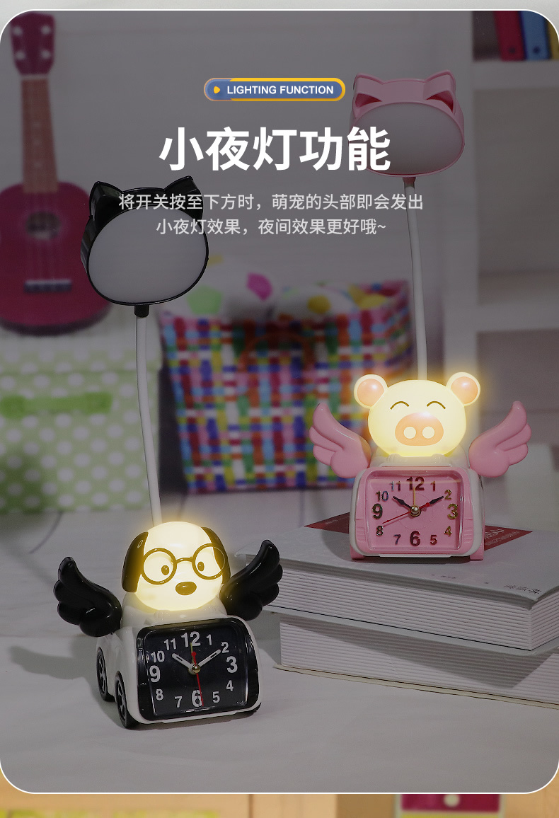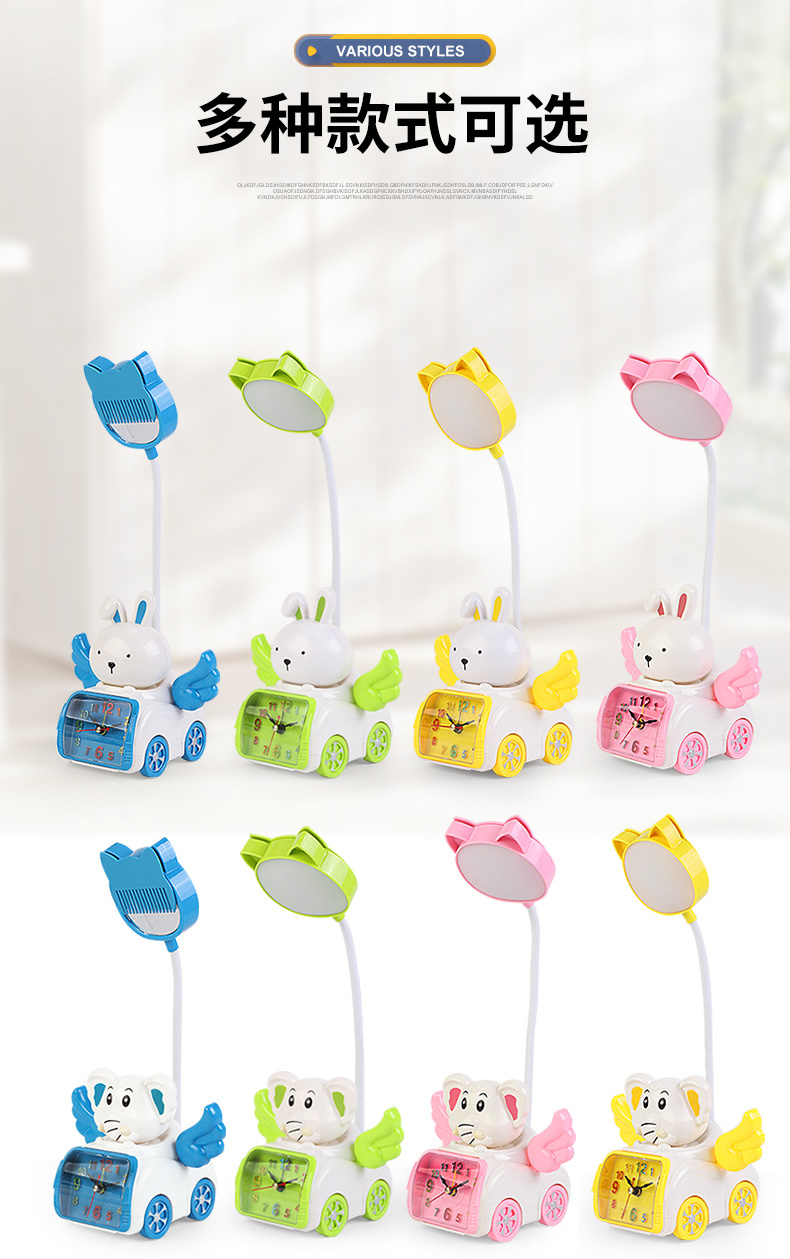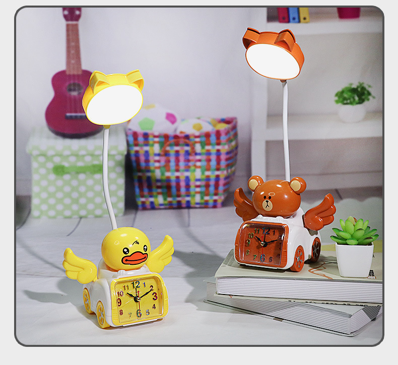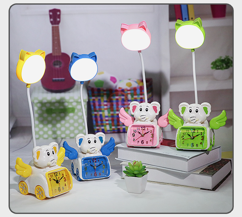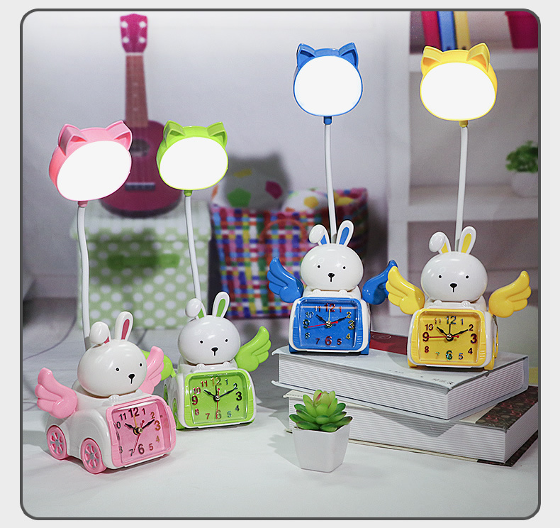 Fabricante venta directa Angel Wing creatividad lámpara de belleza multifuncional con despertador recargable USB lámpara de mesa de dibujos animados
