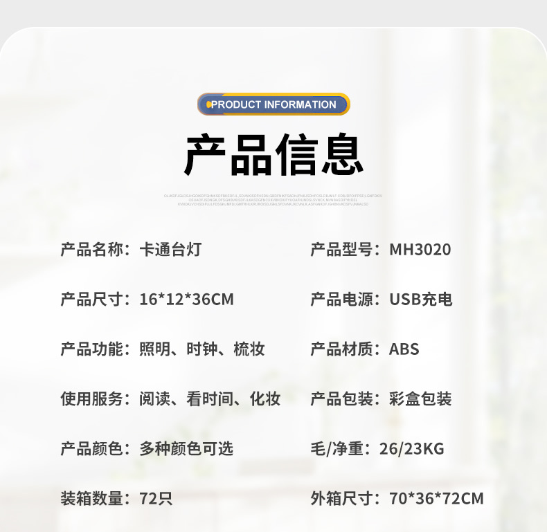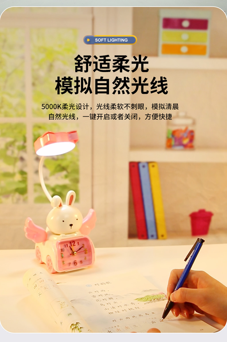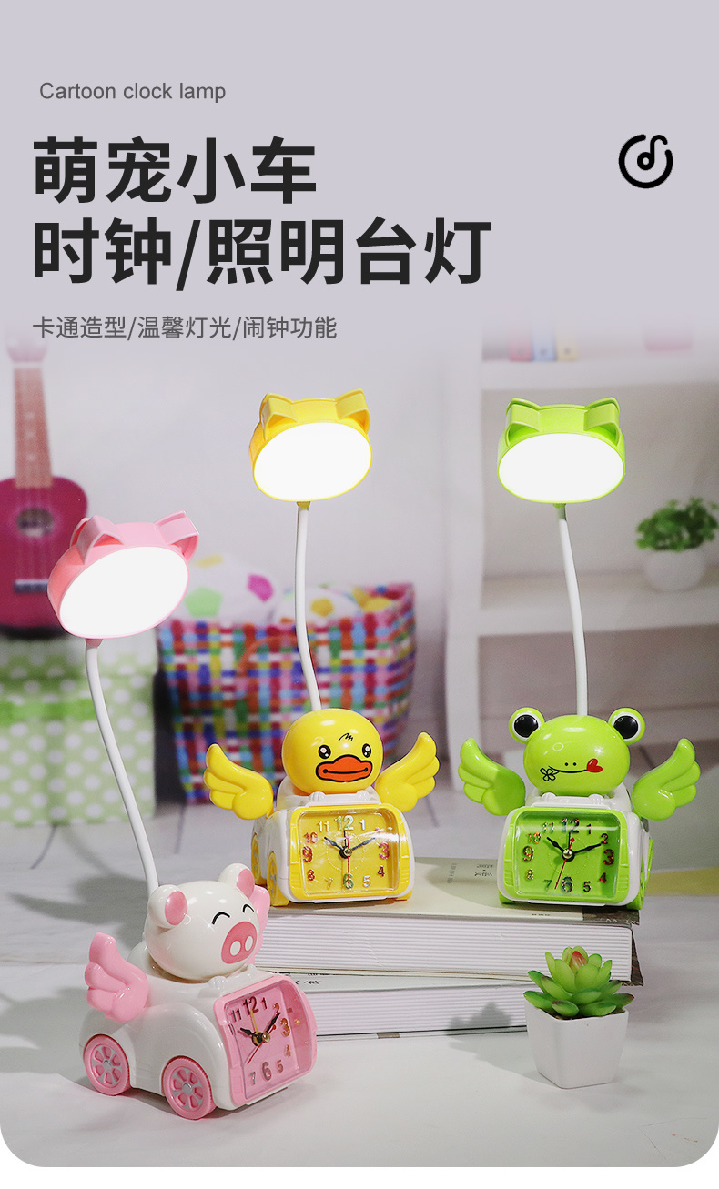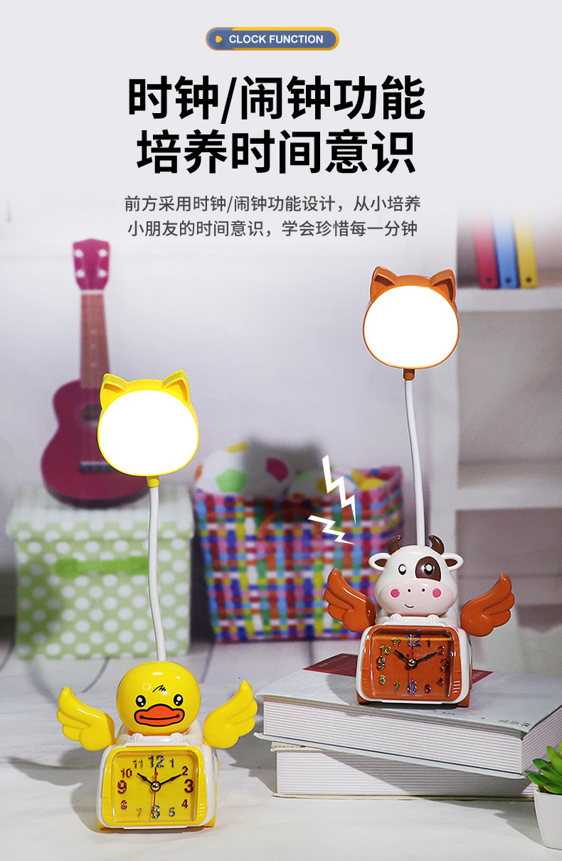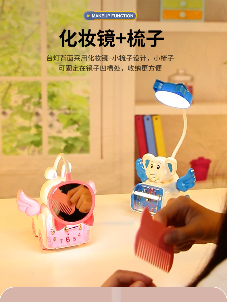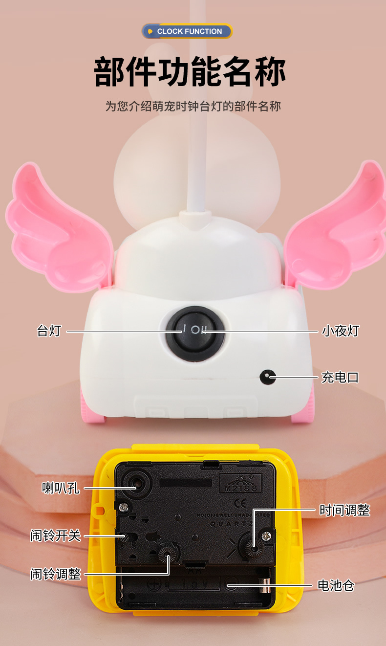 Fabricante venta directa Angel Wing creatividad lámpara de belleza multifuncional con despertador recargable USB lámpara de mesa de dibujos animados