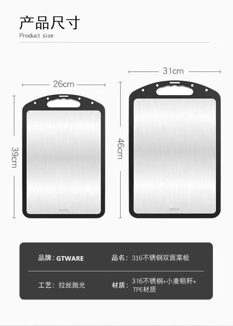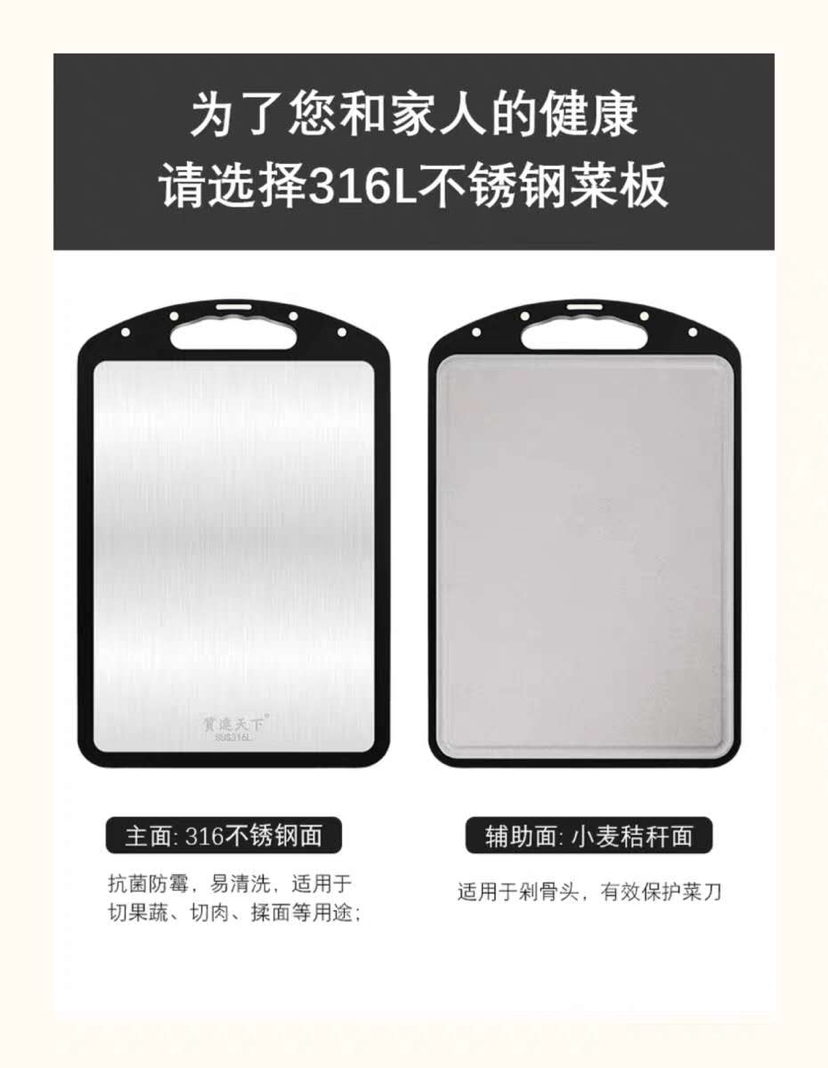 Artículos de cocina 316 tablero de verduras de doble cara de acero inoxidable