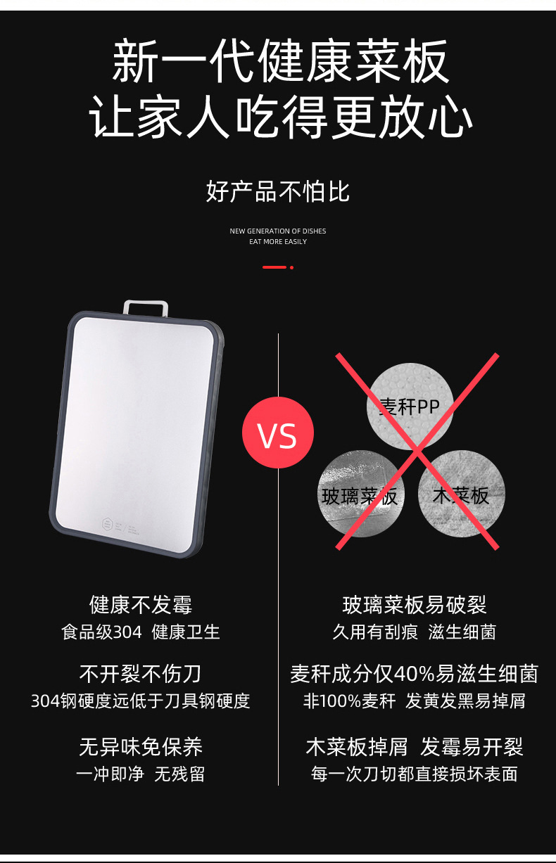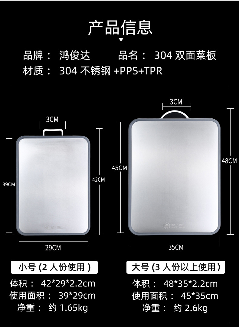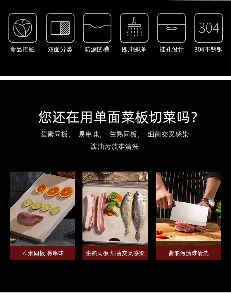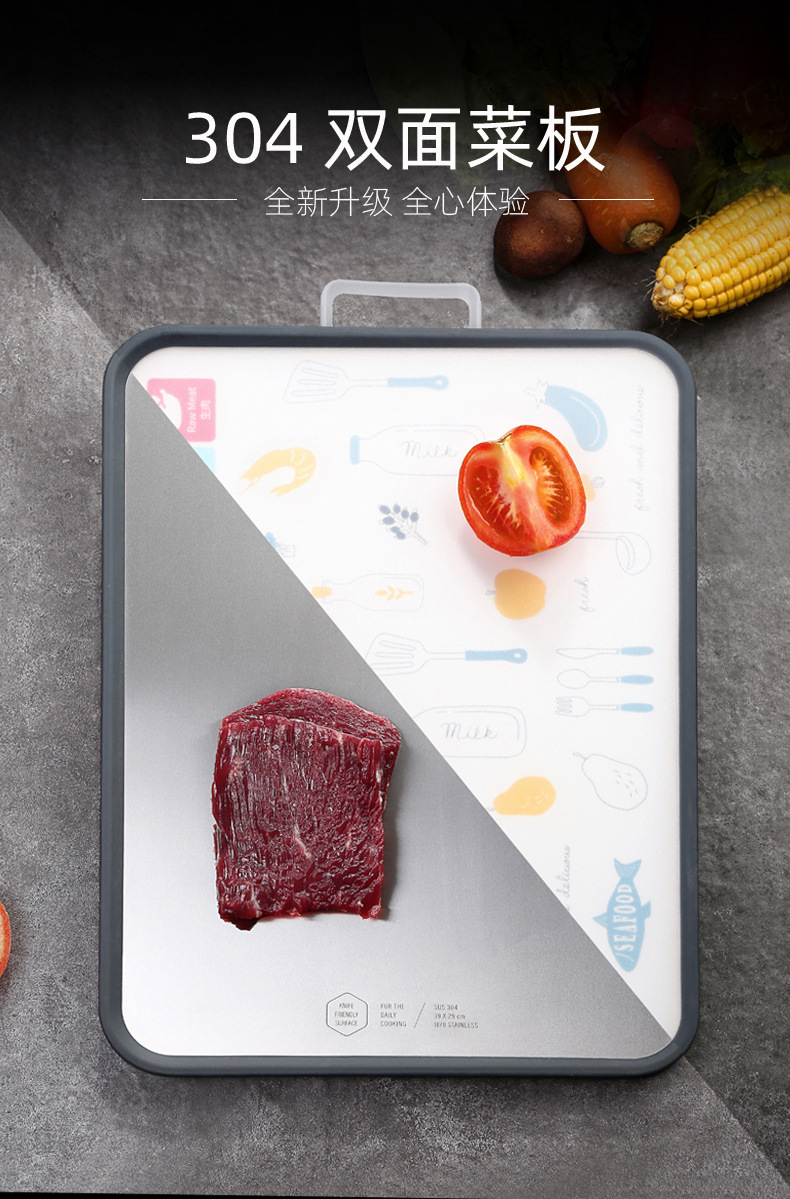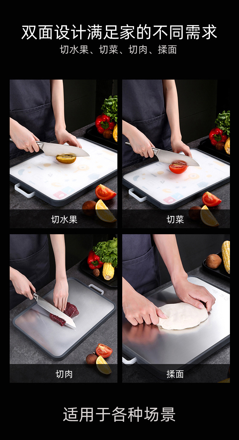 Tabla de cortar 304 tabla de cortar de acero inoxidable tabla de cortar de frutas de cocina PP clasificación de tabla de cortar de doble cara de plástico 316