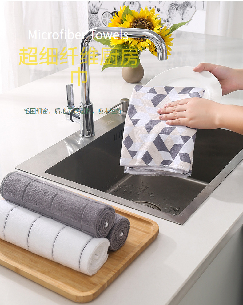Cocina de microfibra, trapo de tela de limpieza, traje de toalla de lavavajillas, absorción de agua sin perder el pelo, suministrado directamente por el fabricante personalizado