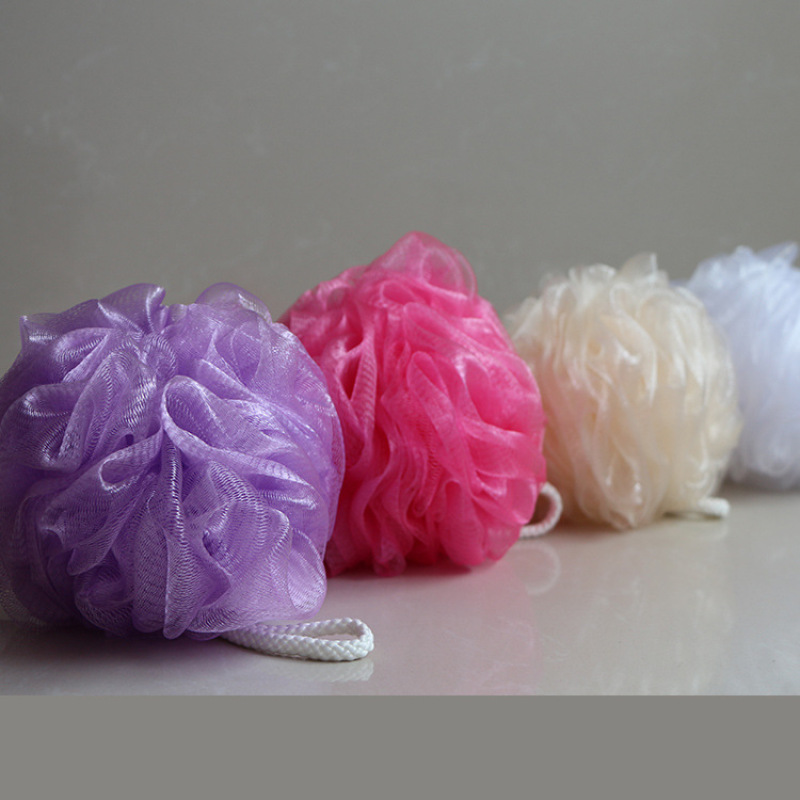 El fabricante vende directamente lindas bolas de baño de color, artefactos de baño, flores de baño, cepillos de baño de 50 gramos se pueden personalizar.
