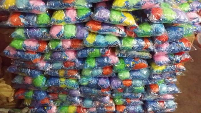 一件颜色混装,五颜六色,一般一件装500朵,可以单个包装,可以12个一中包,可以礼盒包装,可以桶装,可以网袋装。