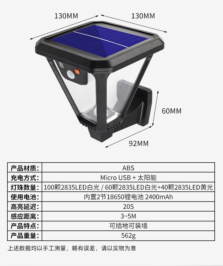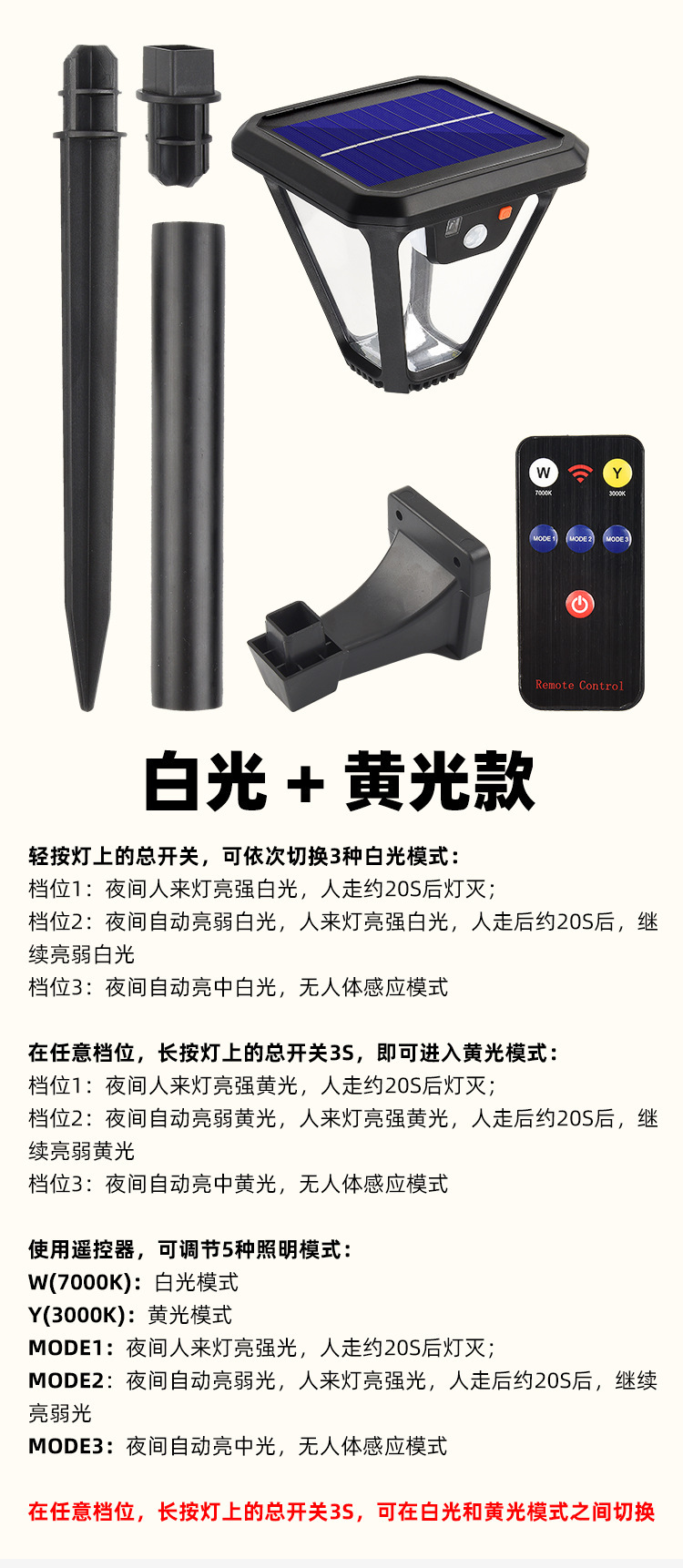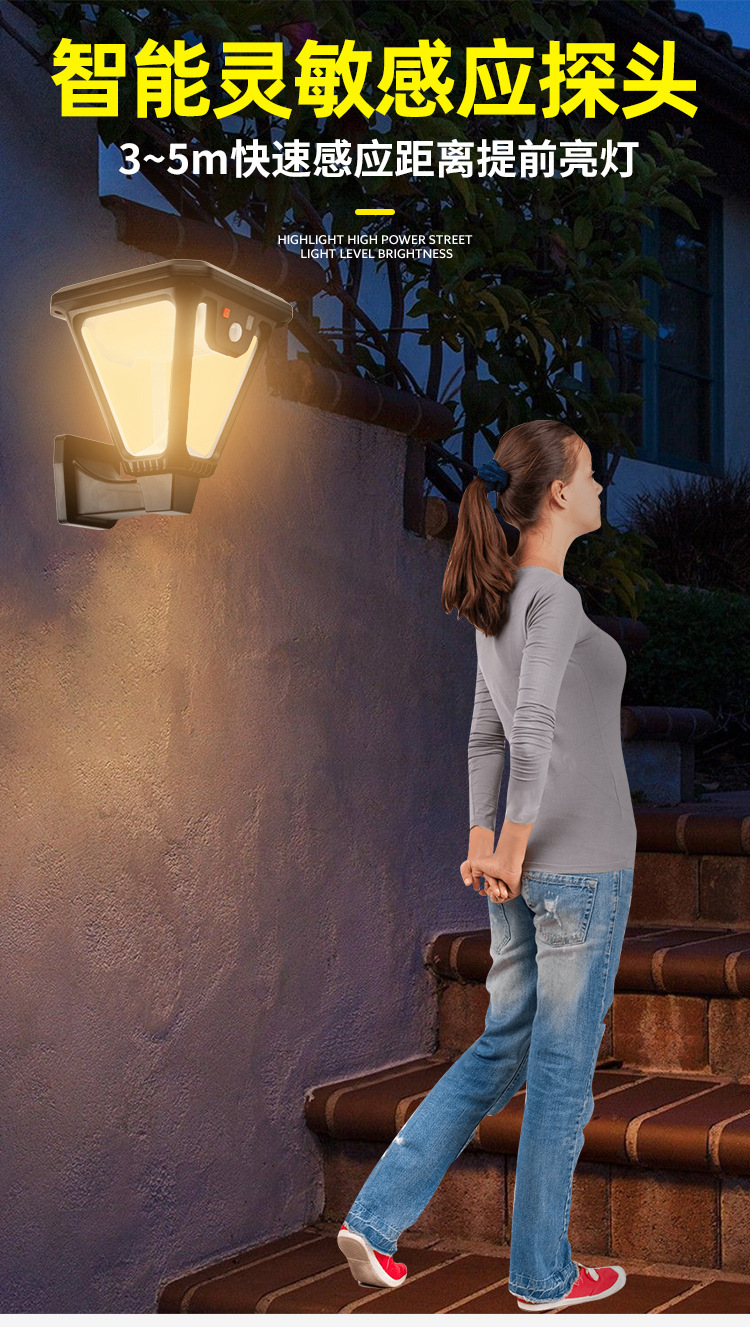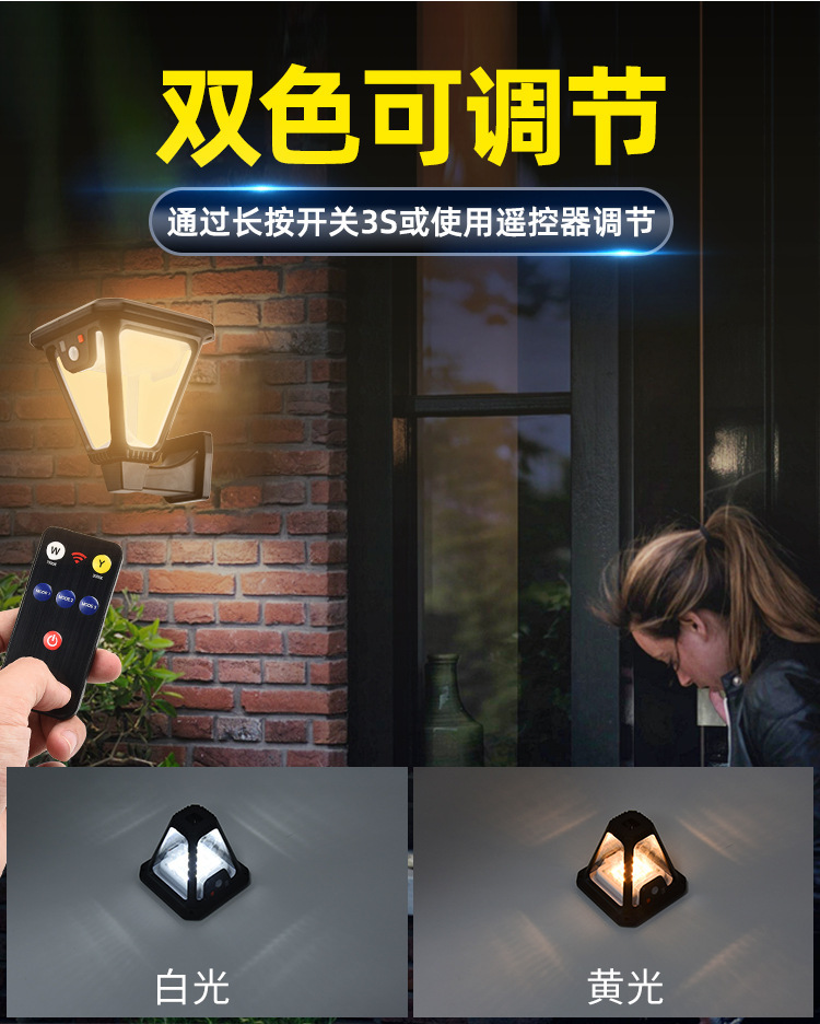 Lámpara de pared solar lámpara de pared LED creatividad luz amarilla y Blanca Doble luz impermeable al aire libre lámpara de pared de inducción jardín farola