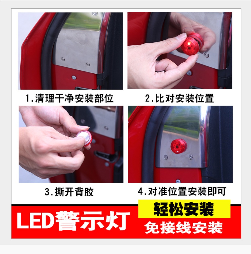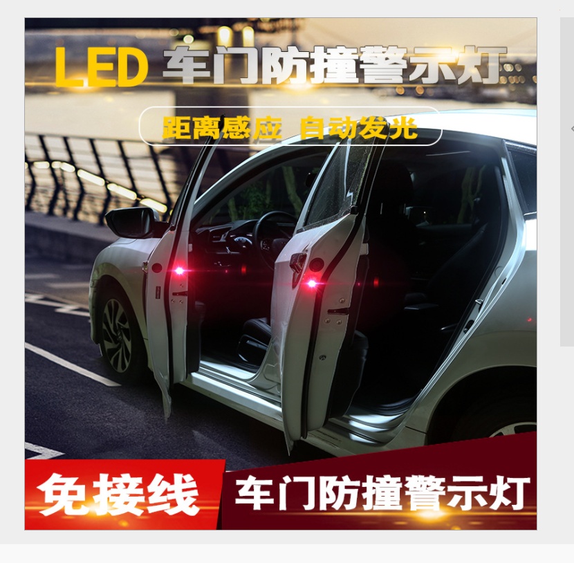 Luz de advertencia de la puerta LED del automóvil, anticolisión de seguridad, luz trasera, luz de apertura de la puerta, luz de inducción flash, modificación sin cableado
