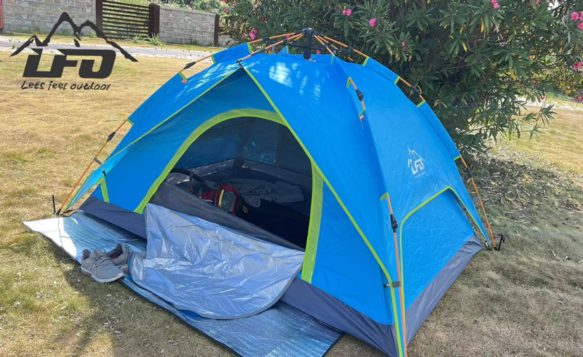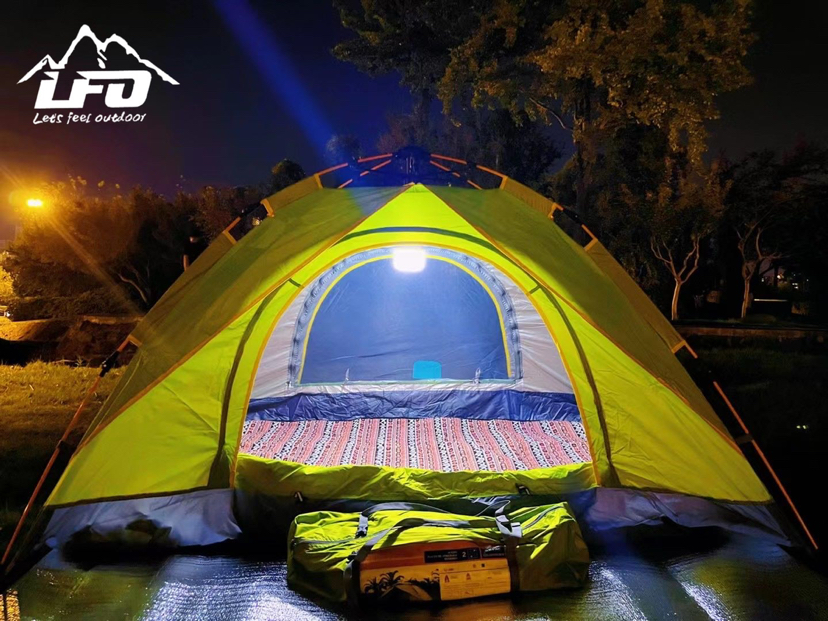 El fabricante de tiendas de campaña Tent del parque de apertura rápida apoya directamente a una pareja de campamento de productos al aire libre.