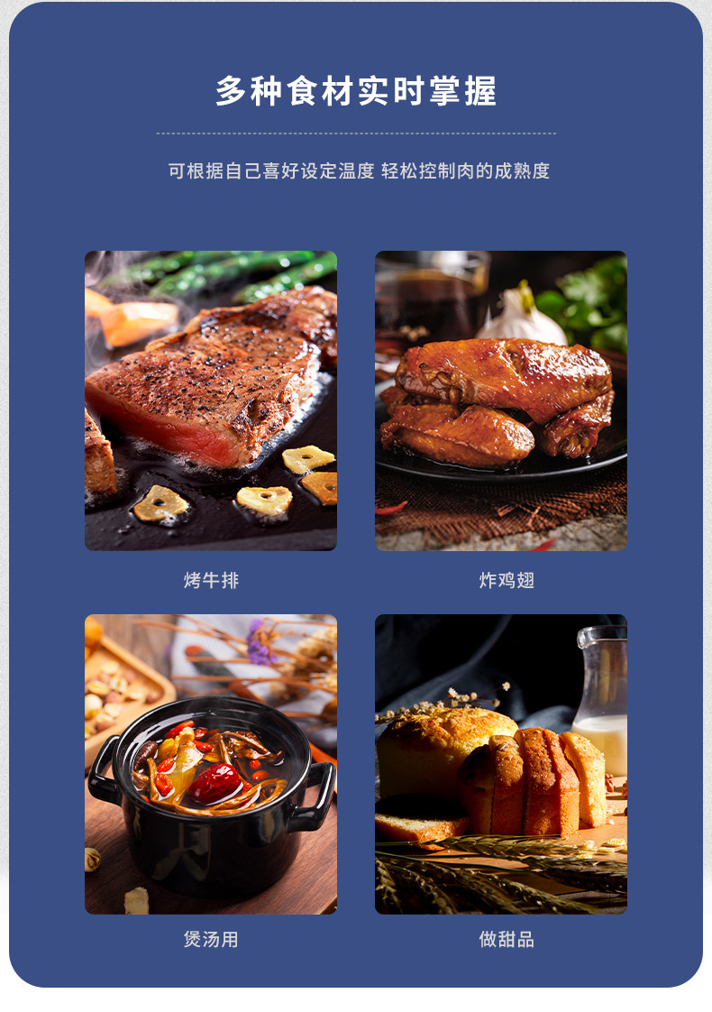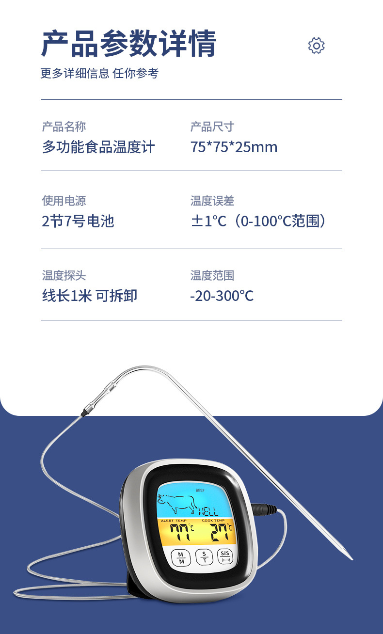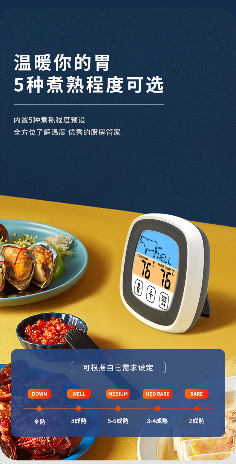 7.报警方式:2种报警方式(计时器和烧烤温度计)
