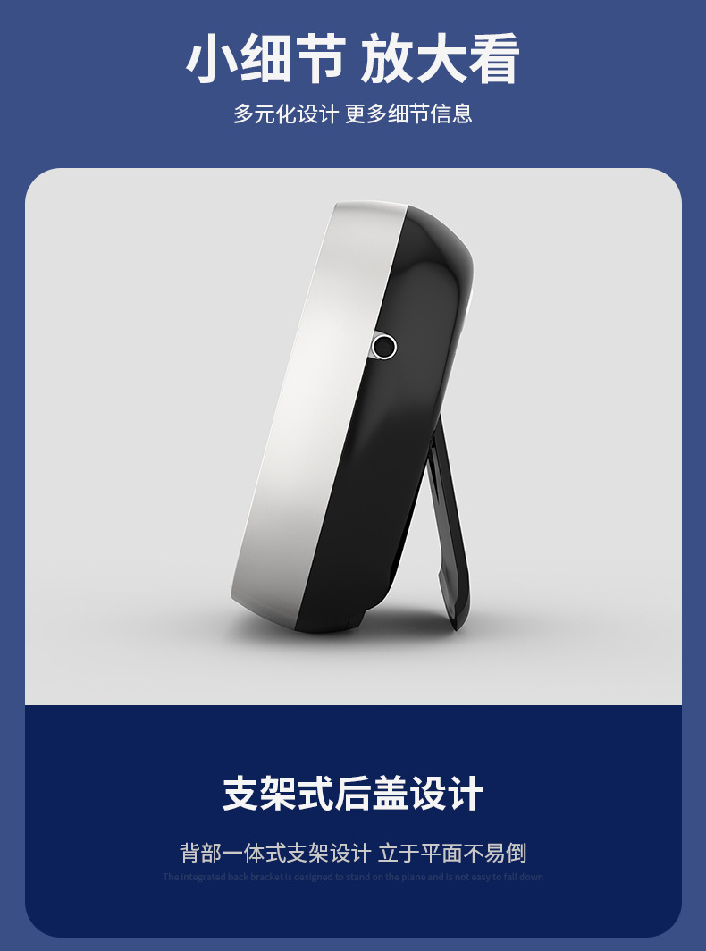 9.产品后壳有带支架,磁铁,便于吸附铁质家电和平稳站立