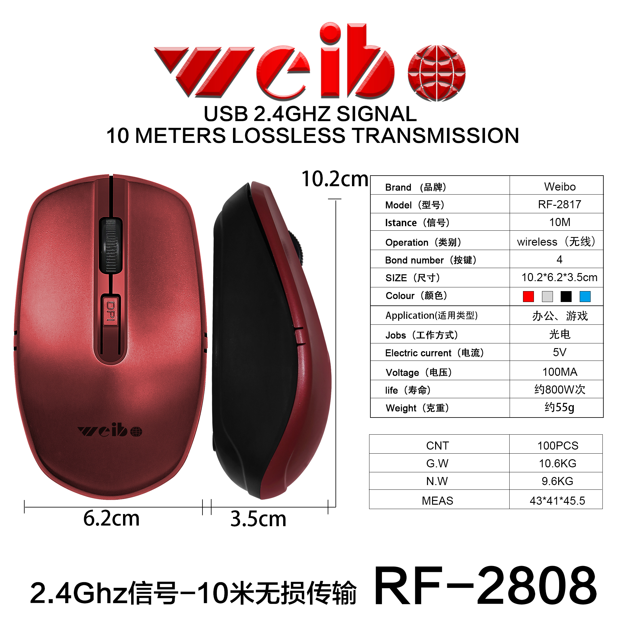 *2.4G10米无线光学鼠标 *无线迷你接收器,即插即用 *接收器可藏于鼠标插孔 *电源开关和节电模式 *分辨率:1600&2800DPI可调节高精度扫描速度