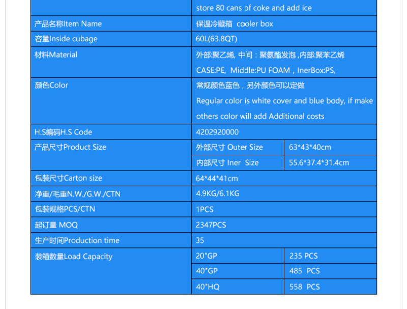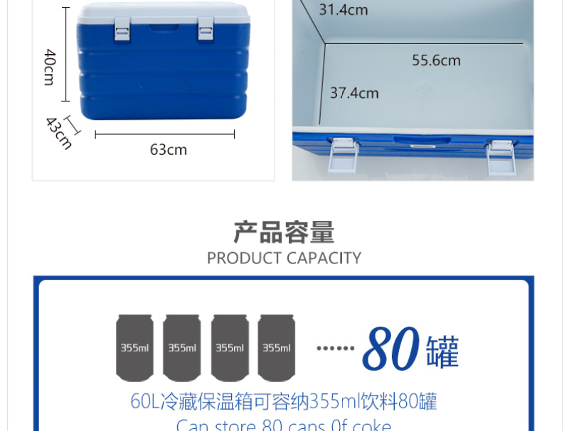 [fábrica] caja de aislamiento térmico Pu caja de refrigeración caja de cadena de frío fresca campamento al aire libre puestos para proteger cubos de hielo pesca marina 60l