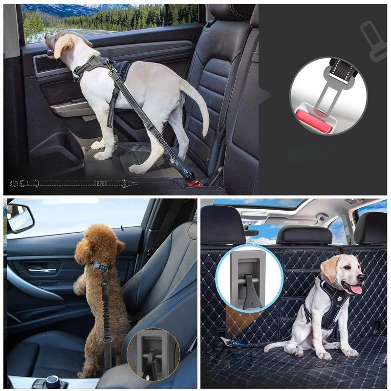 Perros de compañía con artículos especiales para viajes de perros, cuerdas de tracción de pelo dorado de teddy, hebillas de automóviles de cadena de perros