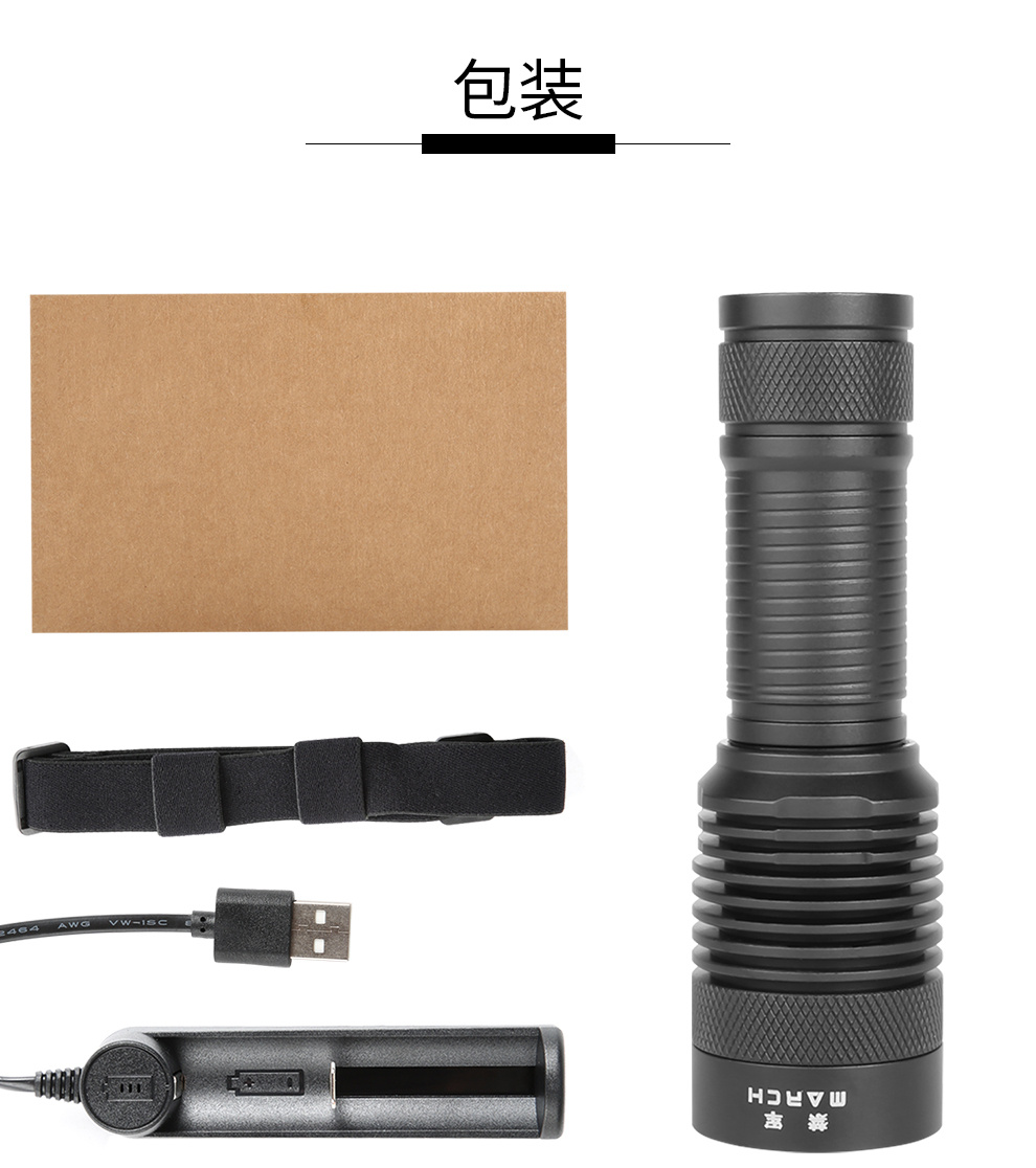 March entra en la linterna de luz fuerte de aleación de aluminio al aire libre 1800 Lumen explosión flash impermeable batería de litio recargable portátil