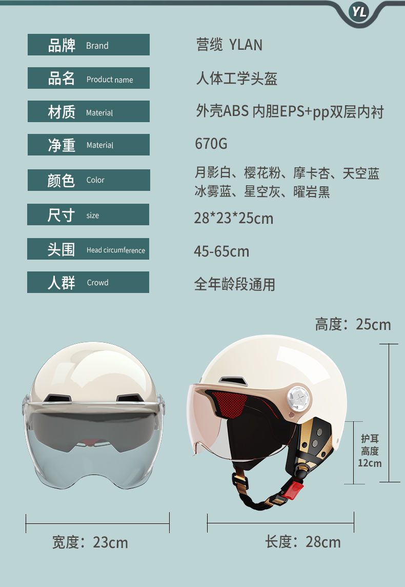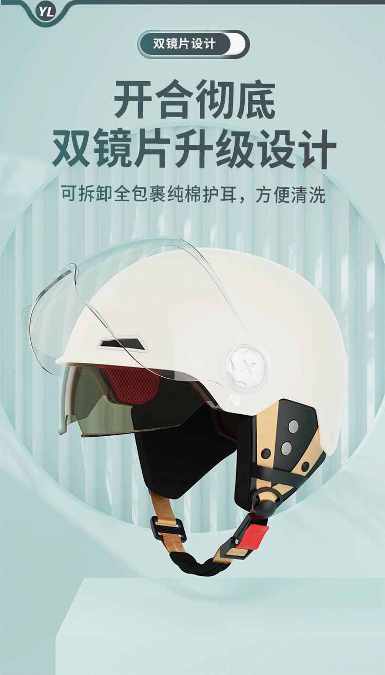 Casco de coche de batería eléctrica yelan, doble lente para hombres y mujeres, medio casco universal para todas las estaciones, casco de protección solar y transpirable, casco de Seguridad completo