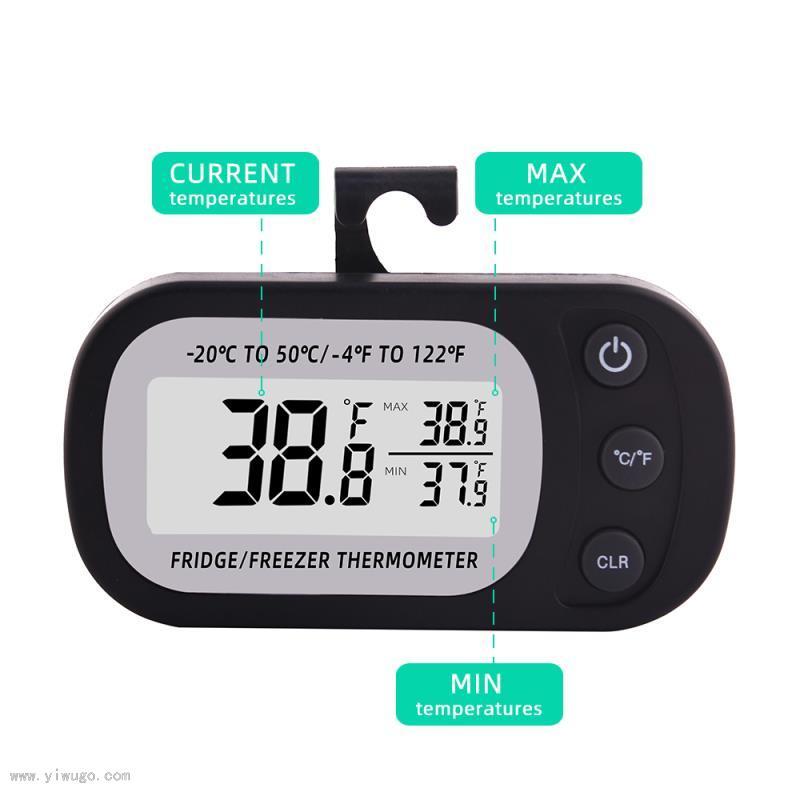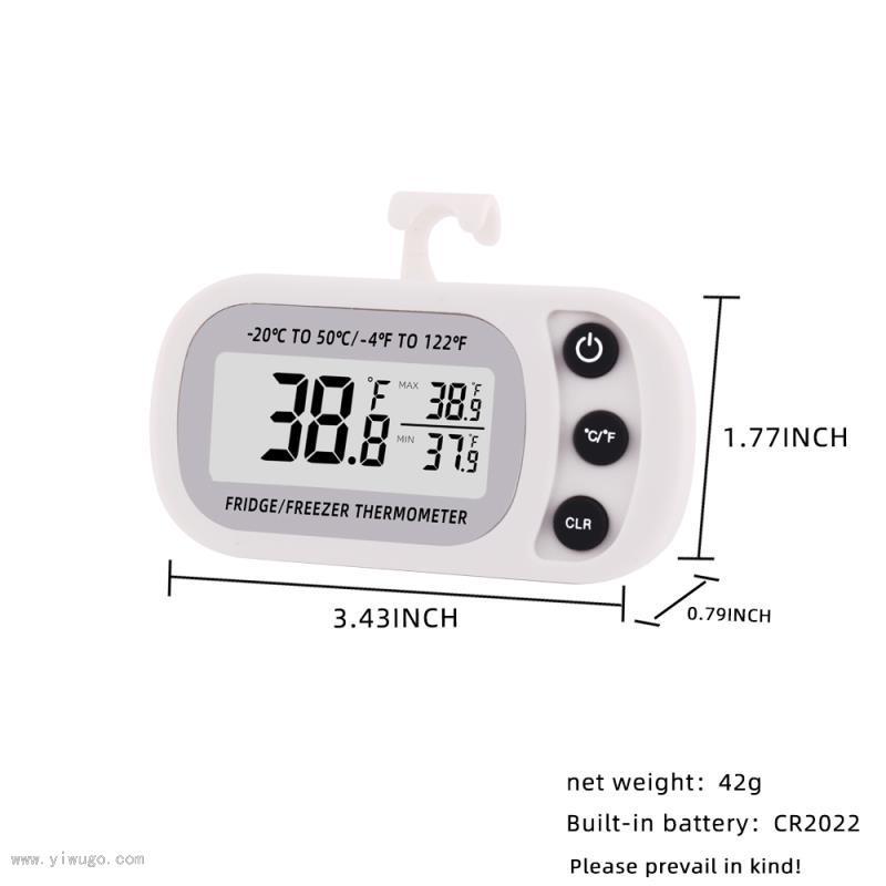 食品温度计 单个产品重量:49g(含包装) 产品材质:胶壳ABS 产品尺寸:88.4*61.1*23.9mm 包装方式:白盒+英文说明书 装箱资料:40.8*35.4*34.0CM/200pcs 毛重:13.5kg 电池:1颗CR2022电池 内置自带