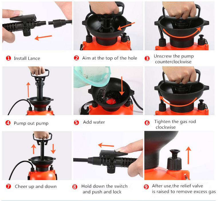 5 / 8 / 10l pulverizador manual de presión de aire hortícola con fondo para regar flores, regadera de plástico a mano, regadera de lavado de automóviles y regadera doméstica