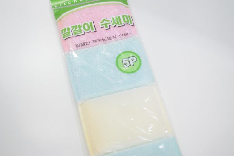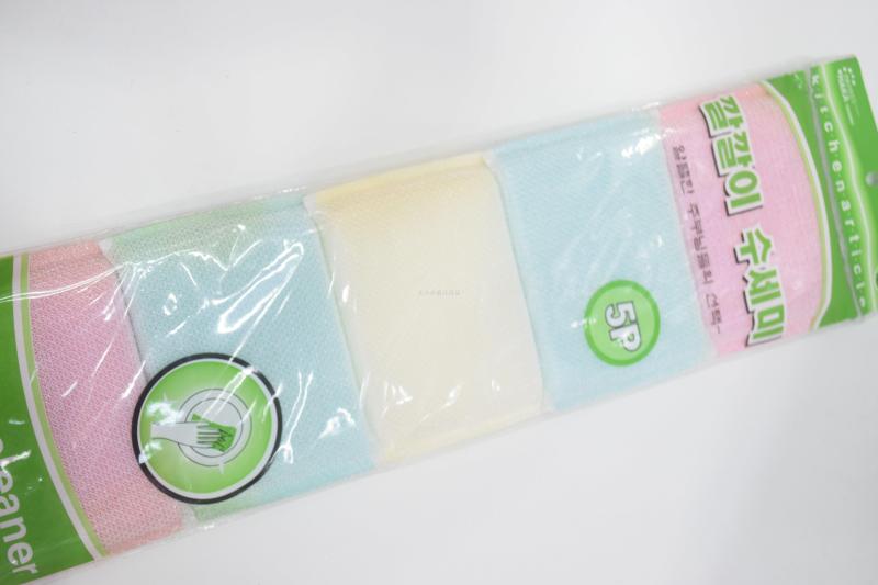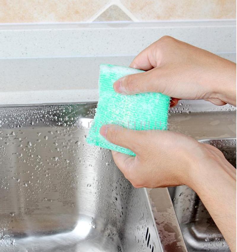 Esponja de lavado de platos de cocina 5 piezas en una olla limpia, cepilla la tela de lavado de platos, frota mágicamente la tela de limpieza de color oro y plata.