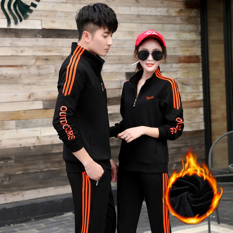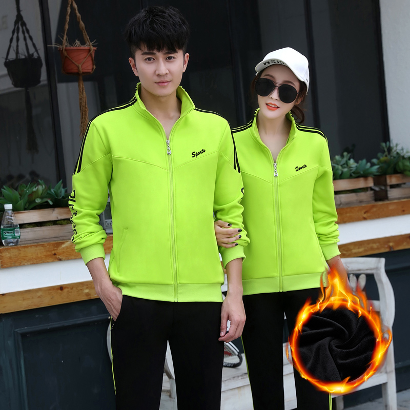 Chaqueta traje deportivo conjunto de algodón puro de tres piezas para hombres y mujeres, chaqueta deportiva de uniforme de pareja engrosada con terciopelo al aire libre