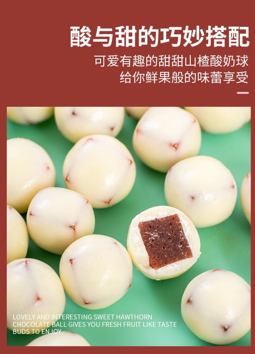 ZJ2.16《山楂酸奶球》外面是白色酸奶巧克力,夹心是山楂 ,这款酸酸甜甜的味道真的是无可挑剔!一箱20斤,拿货11元一斤,10箱起批。