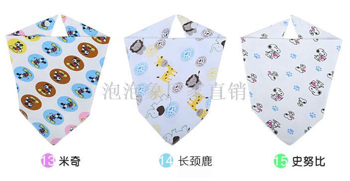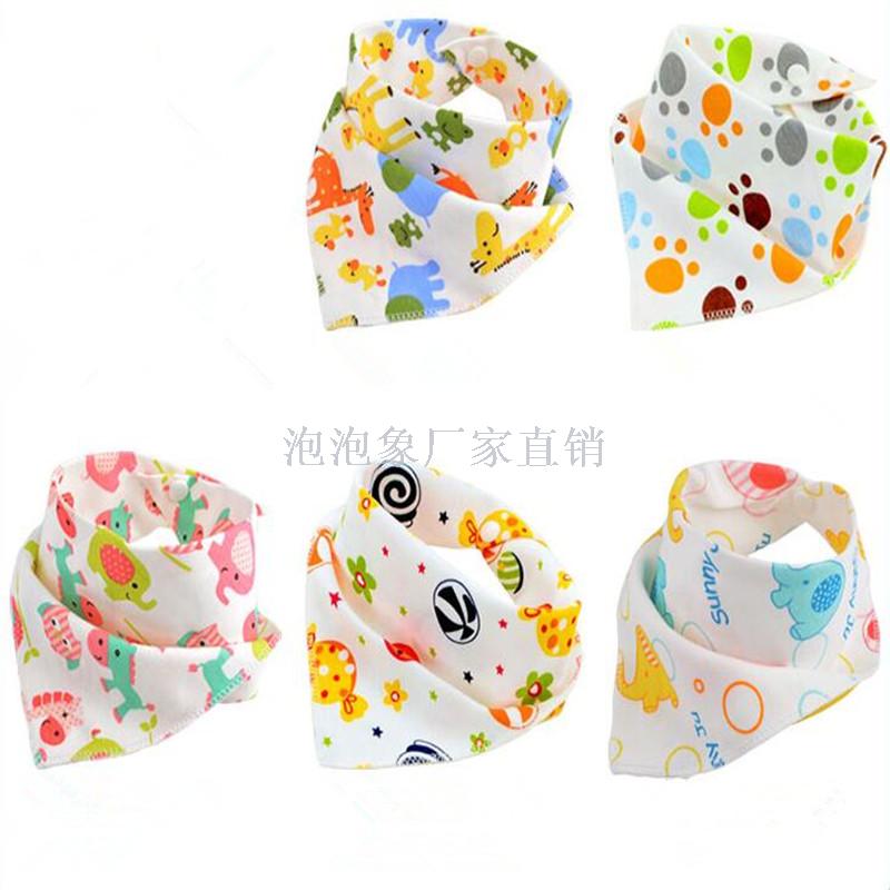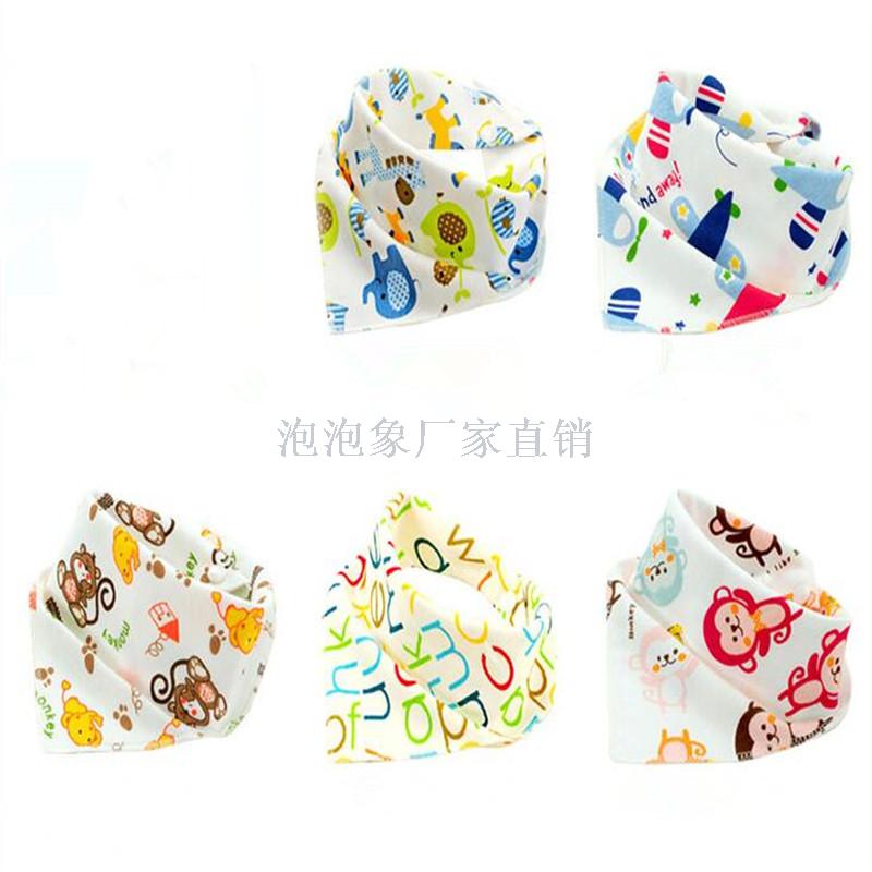 Doble capa de pañuelos triangulares impresos de dibujos animados para bebés pañuelos de saliva de algodón para bebés baberos infantiles