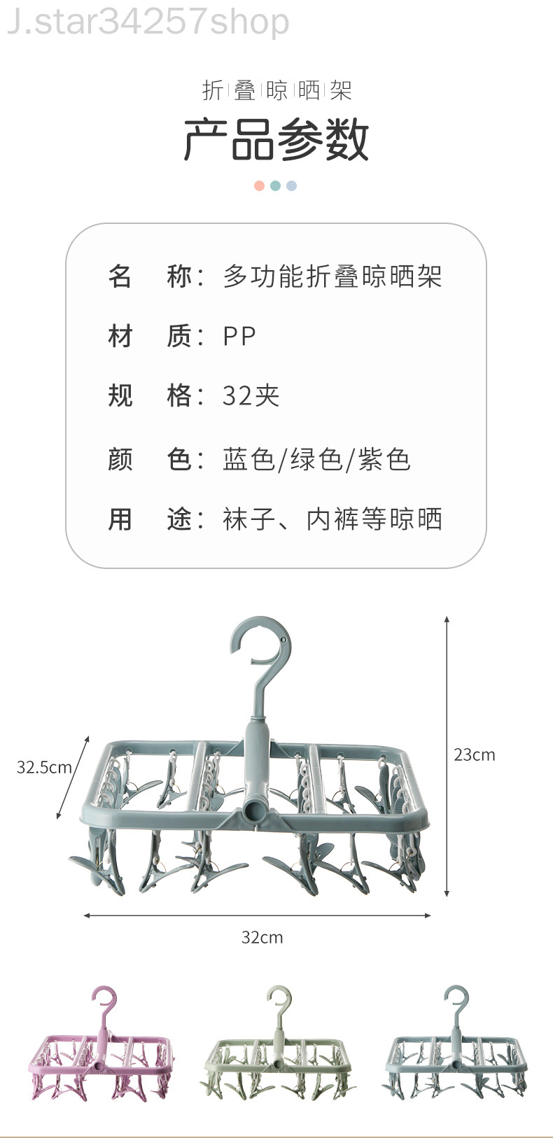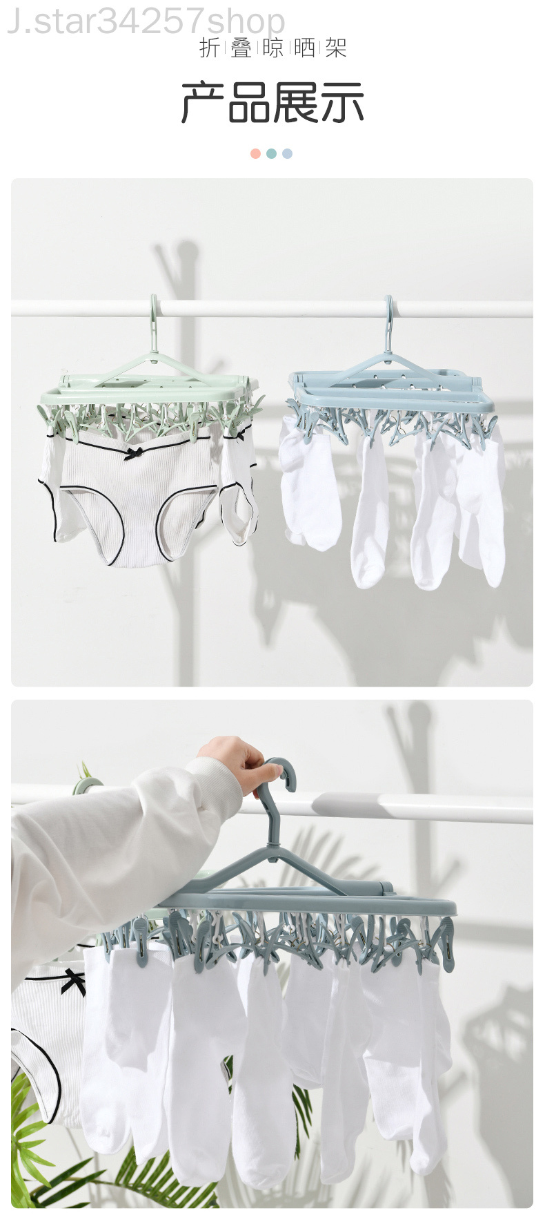 Percha plegable de 32 clips, percha cuadrada de varios extremos, percha de varios clips, ropa interior engrosada, soporte de calcetines, plástico para niños y adultos