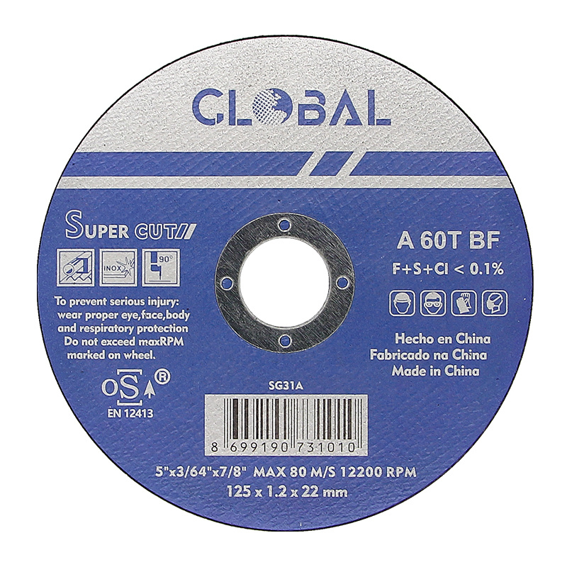 125x1.2 hoja de corte de rueda de molienda, hoja de rueda de resina, hoja de rueda de molienda afilada, resistente al desgaste, metal, Corte de acero inoxidable personalizado en stock