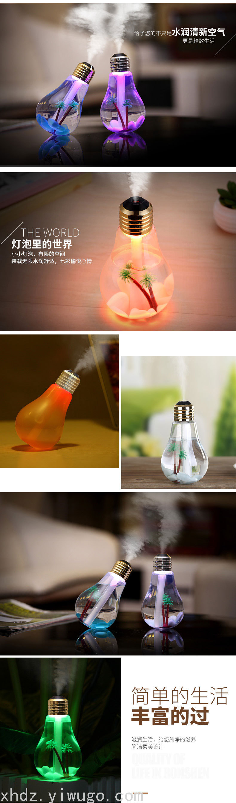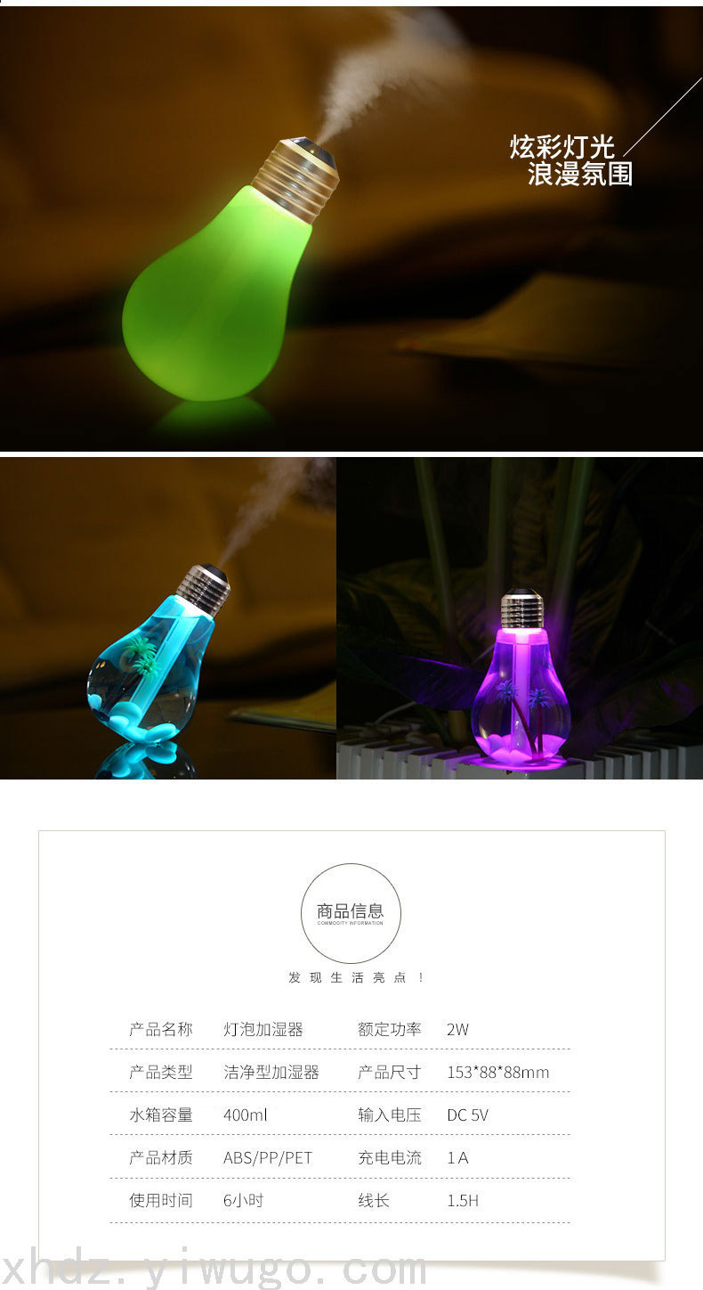 Humidificador de bombillas Humidificador colorido Humidificador de escritorio Humidificador USB Humidificador colorido purificador de lámparas