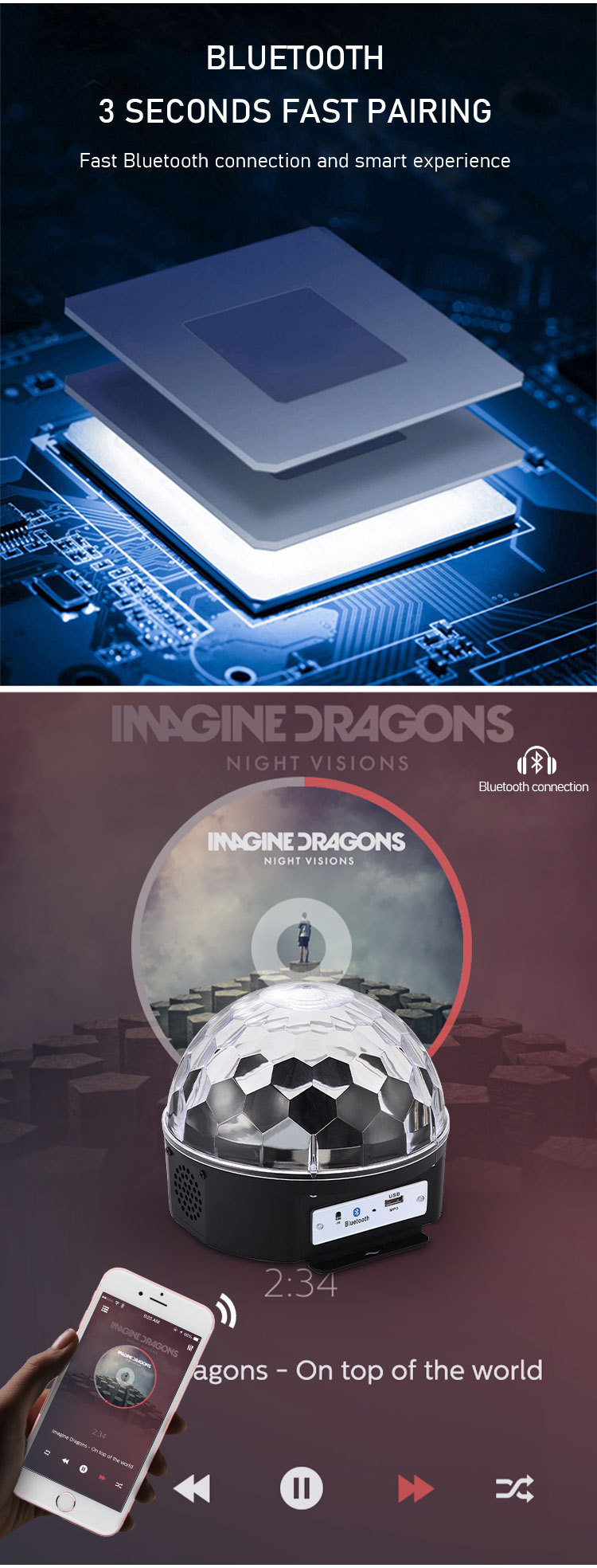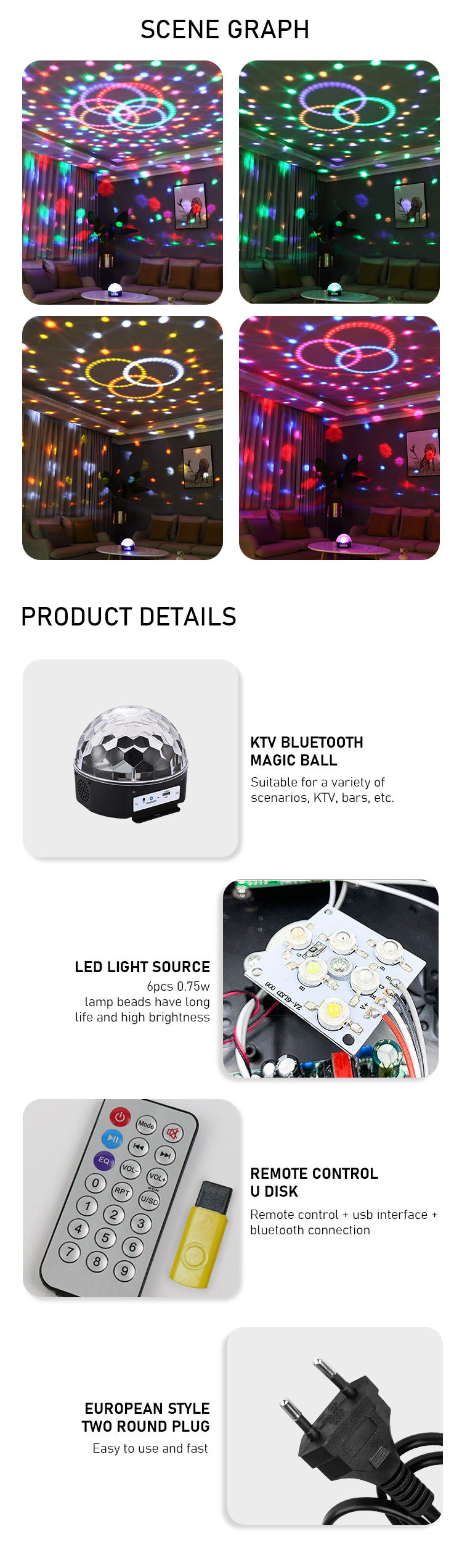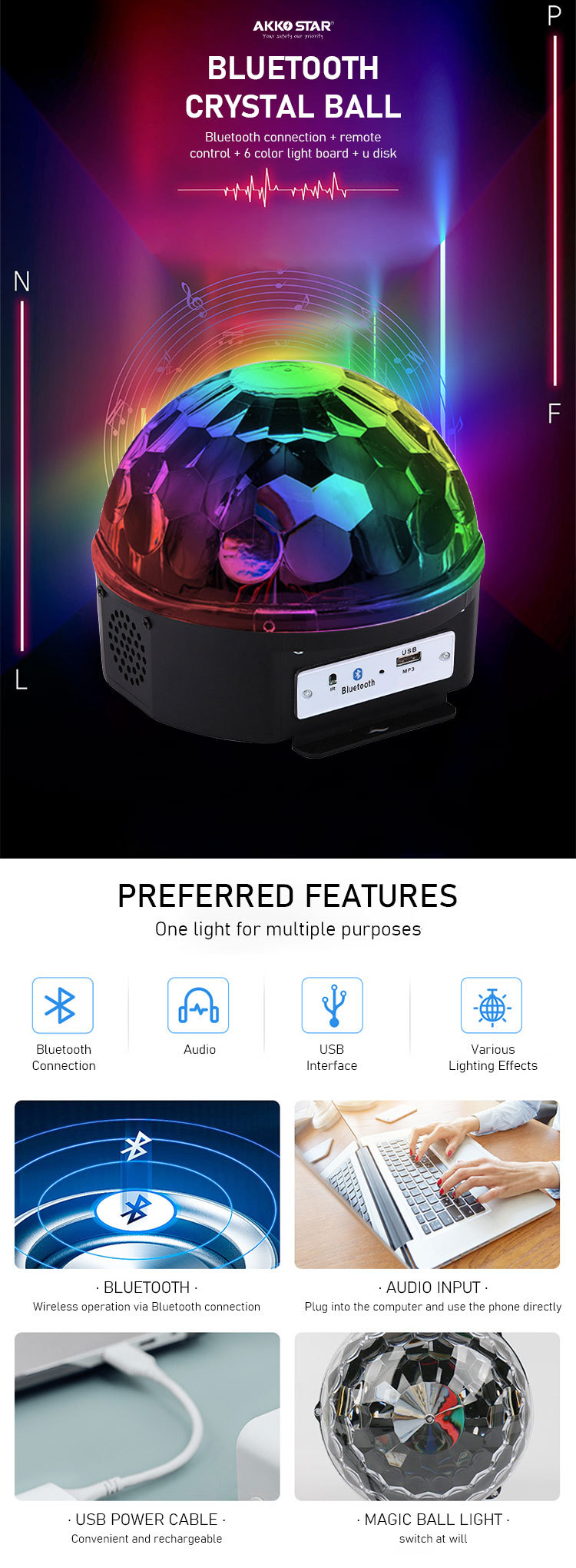 Akko Star LED KTV Big Magic Ball bomb color stage Light with Bluetooth remote control